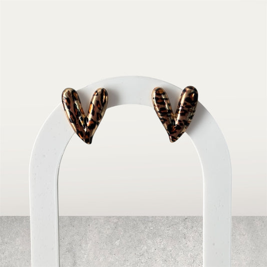 Cheetah Heart Shape Small Stud Earring