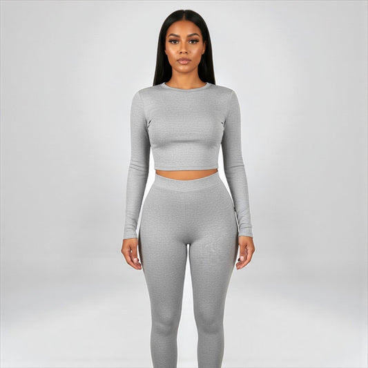 Long Sleeve Ribbed Bodysuit And Pants Set
