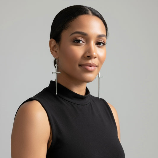 Punk Sword Hook Silver Earrings