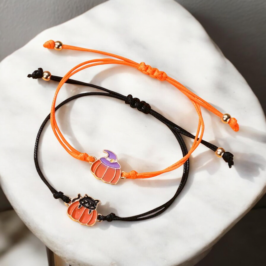 Pumpkin Hat and Cat Bracelet Set