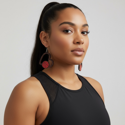 Heart Basketball Wood Earring