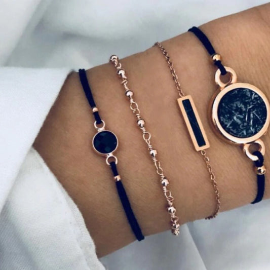 Black Rope Chain Bracelet Set
