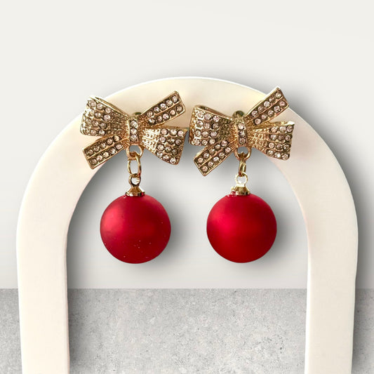 Red Ornament & Crystal Bow Earring