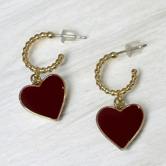 Bold Dark Burgundy Heart Charm Earrings
