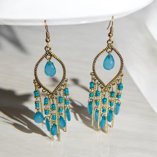 Bohemian Antique Gold Water Drop Tassel Earrings