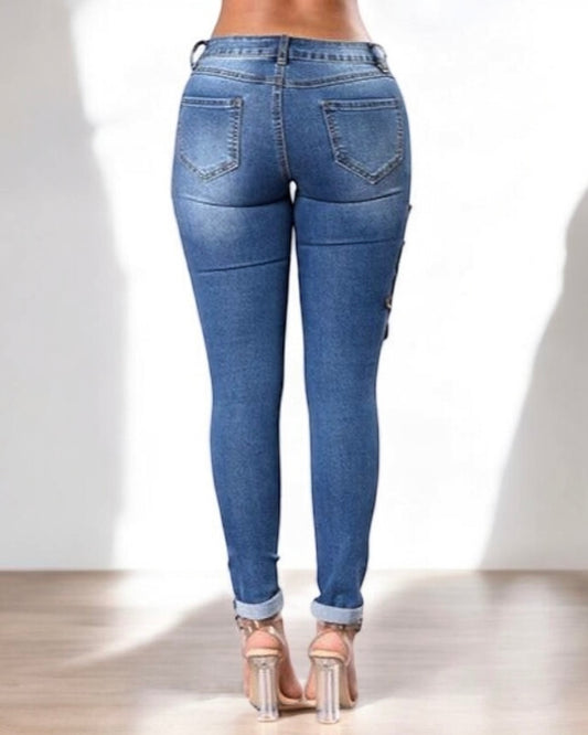 High Rise Star & Heart Patched Dad Jean W/stretch