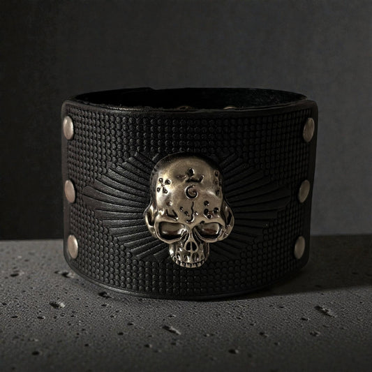 Black Vintage Skull Leather Men Bracelet