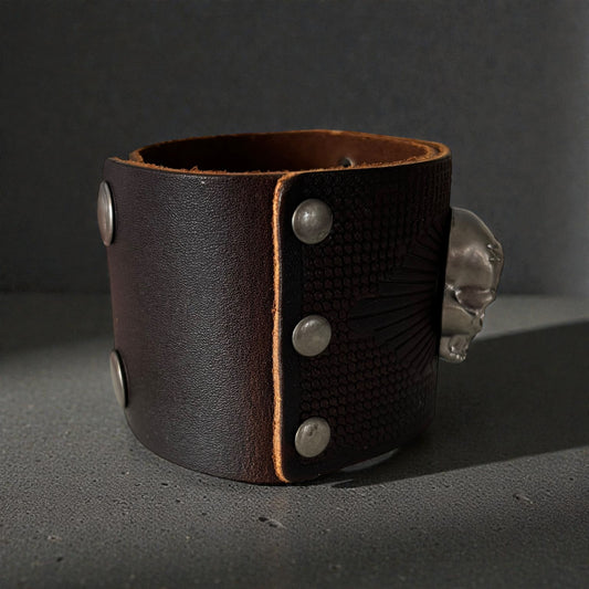 Dark Brown Vintage Skull Leather Men Bracelet