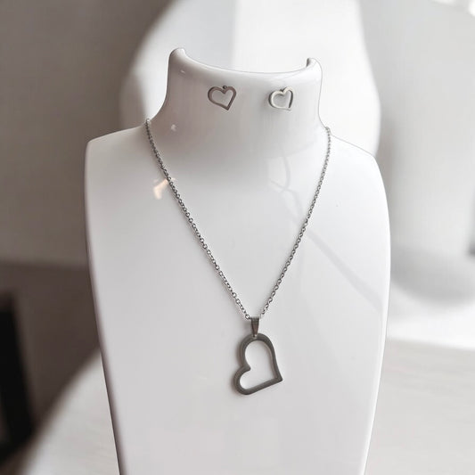 Stainless Steel Heart Silver Necklace & Earring Set
