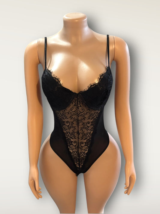 Black Lace Mesh Bodysuit Push up