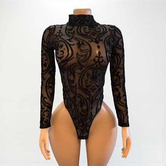 Sheer Mesh Long Sleeve Black Bodysuit