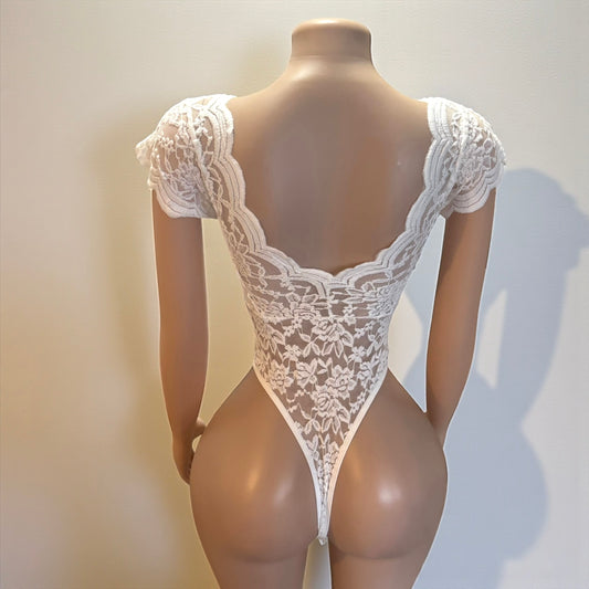 White Backless Lace Bodysuit
