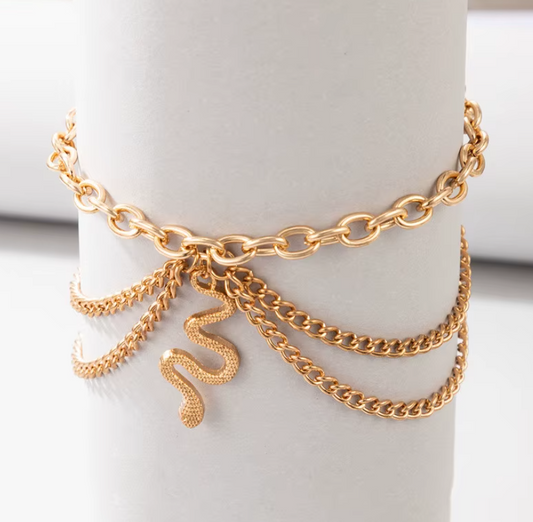 Pulsera de tobillo multicapa con serpiente dorada para mujer