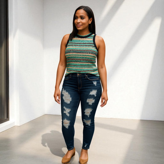 Pantalones vaqueros desgastados con dobladillo sin rematar de color azul