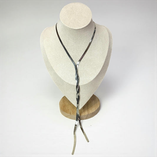 Flat Snake Long Silver Chain Necklace