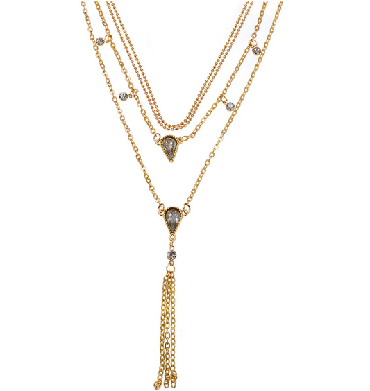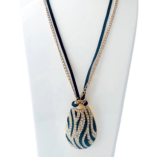 Collar largo con estampado de cebra para mujer, color negro y dorado