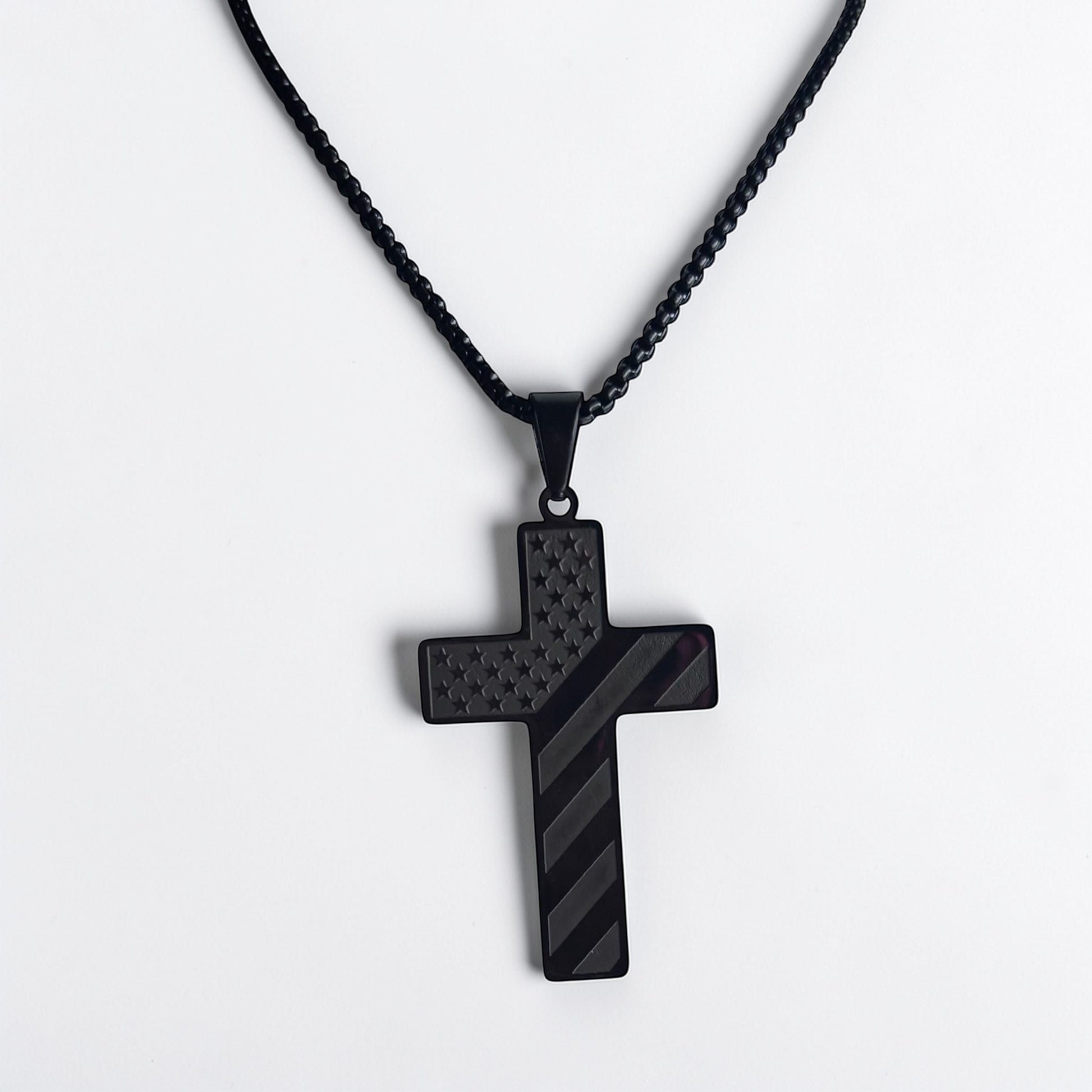 Embrace your faith with our Cross Faith Men Necklace! Made from modern and durable titanium steel, this 23 inch necklace features a stunning 2 inch pendant cross. Let this sleek design be a constant reminder of your beliefs. Perfect for everyday wear and a thoughtful gift for any man of faith.