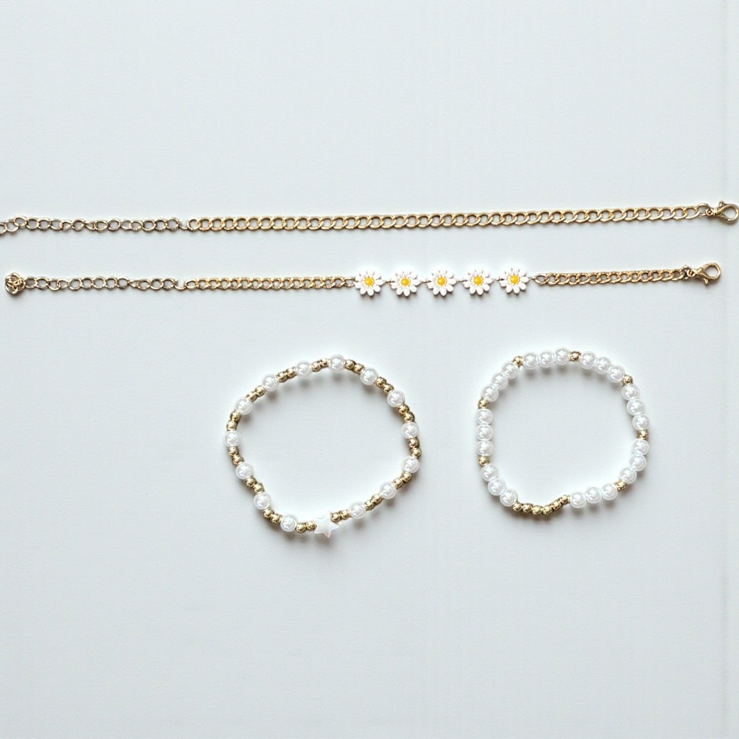 Daisy Flower Pearl Bracelet Set