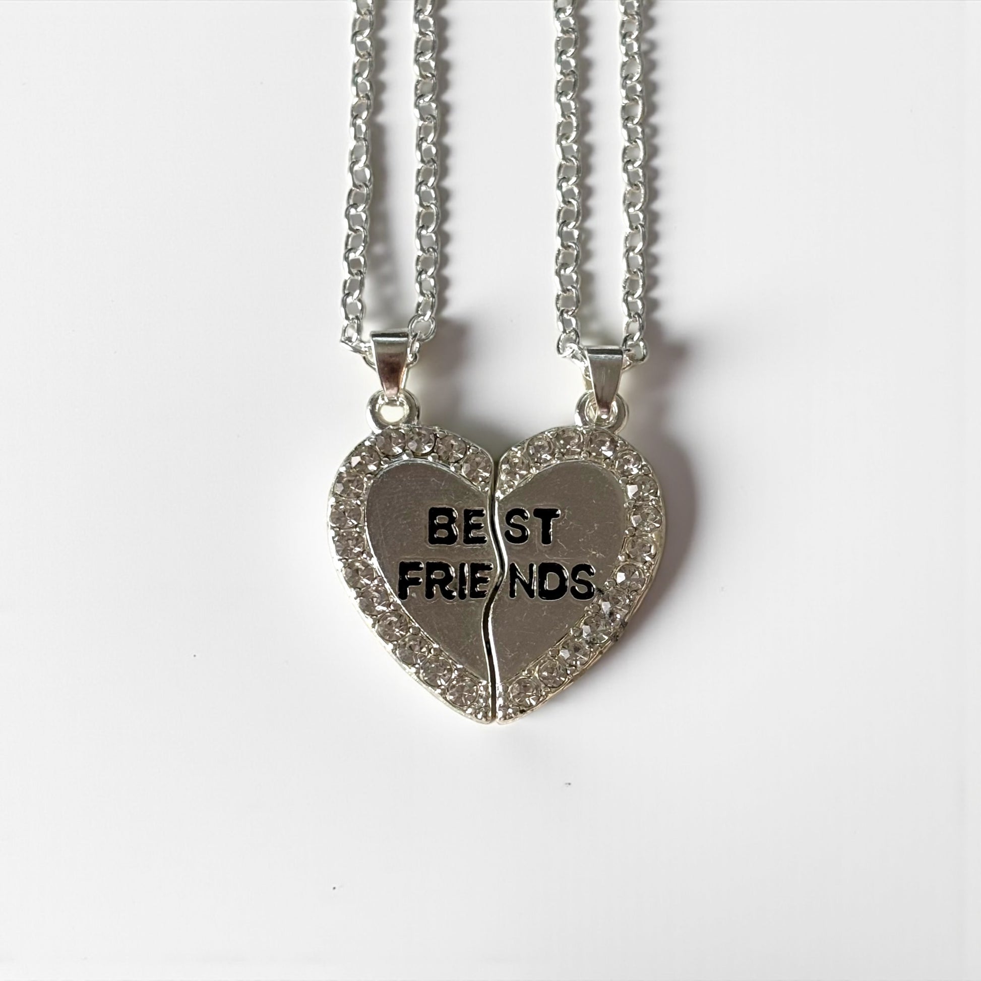 Celebrate your closest bond with this elegant Forever Bestie Chain Set. Each piece features a delicate heart pendant split in two—one for you, one for your forever friend. Crafted from durable alloy, this 2-in-1 set includes matching chains that adjust from 18 inches up to 20 inches with the included extender. A timeless symbol of connection, perfect for sharing with someone who means everything.