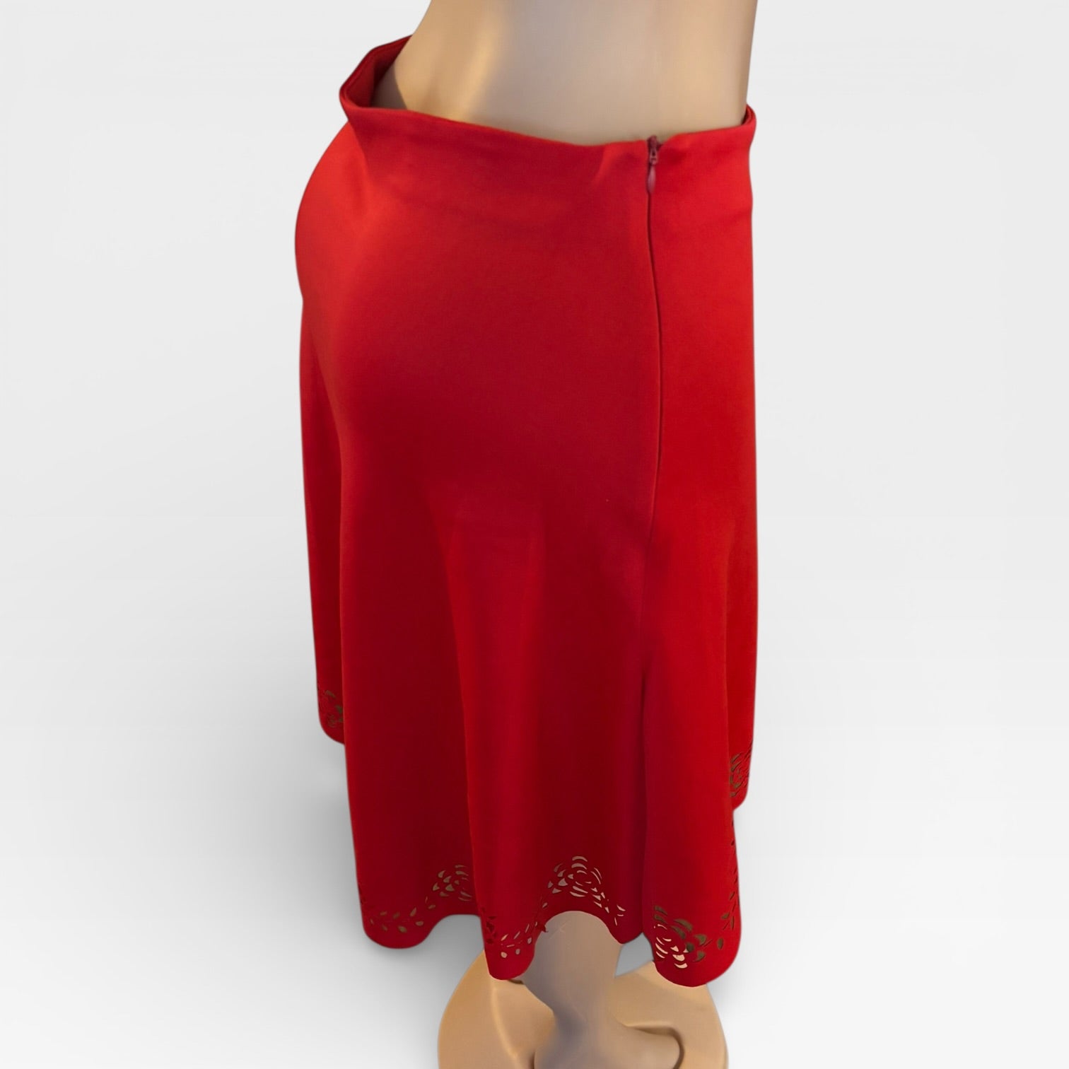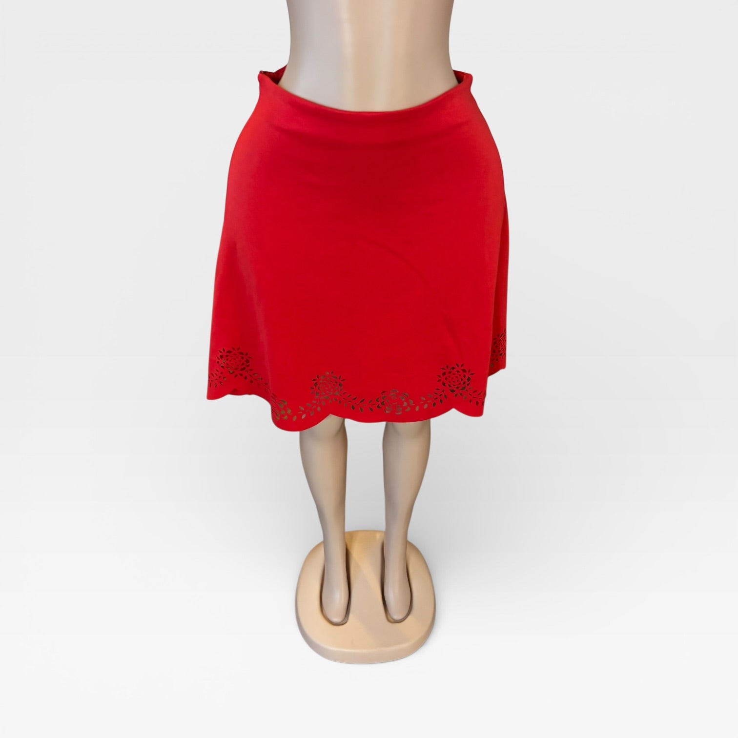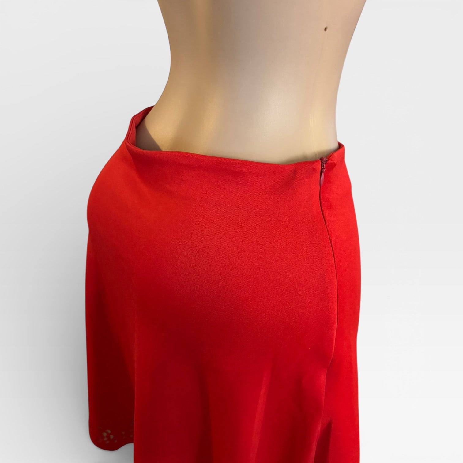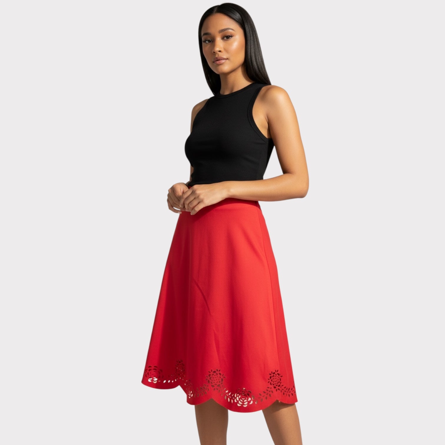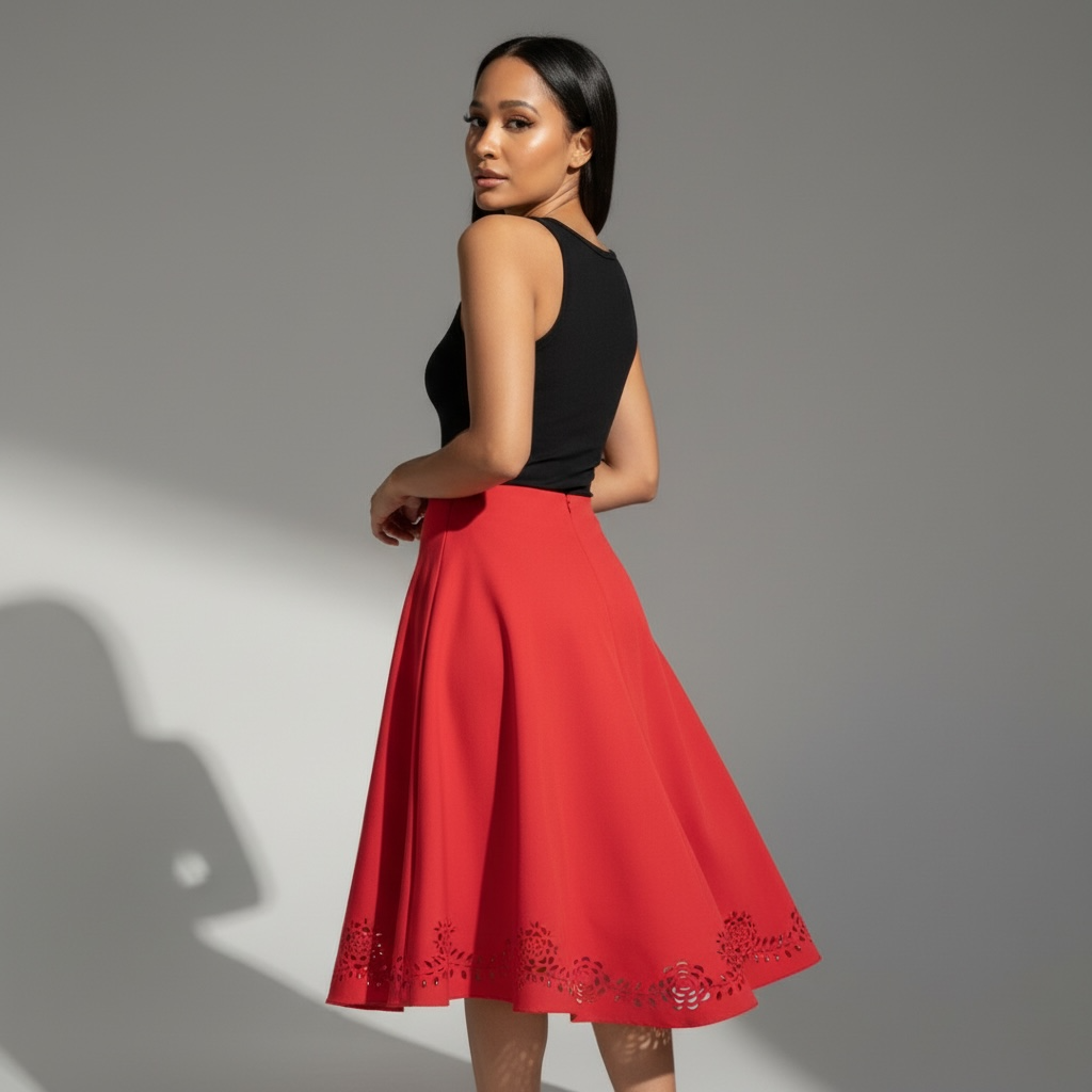 Esta lujosa falda en forma de A está confeccionada con un suntuoso poliéster y llega hasta la rodilla con un impresionante largo. Su diseño sólido y elegante se ofrece en un luminoso color rojo. La falda está diseñada con un favorecedor corte en forma de A y confeccionada con un lujoso tejido de poliéster para ofrecer comodidad y un aspecto hermoso y elegante. Su dobladillo de longitud media añade un toque elegante a cualquier atuendo y está disponible en un impresionante tono rojo para un estilo atemporal.