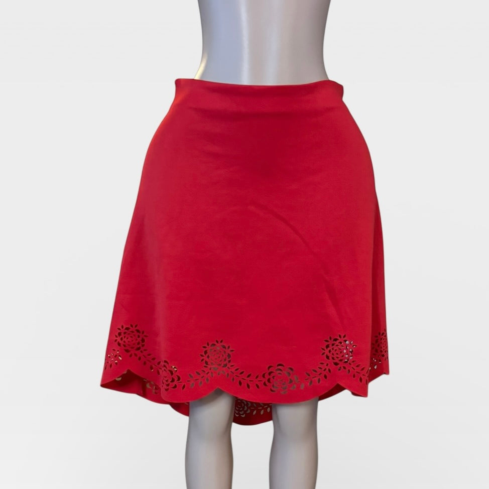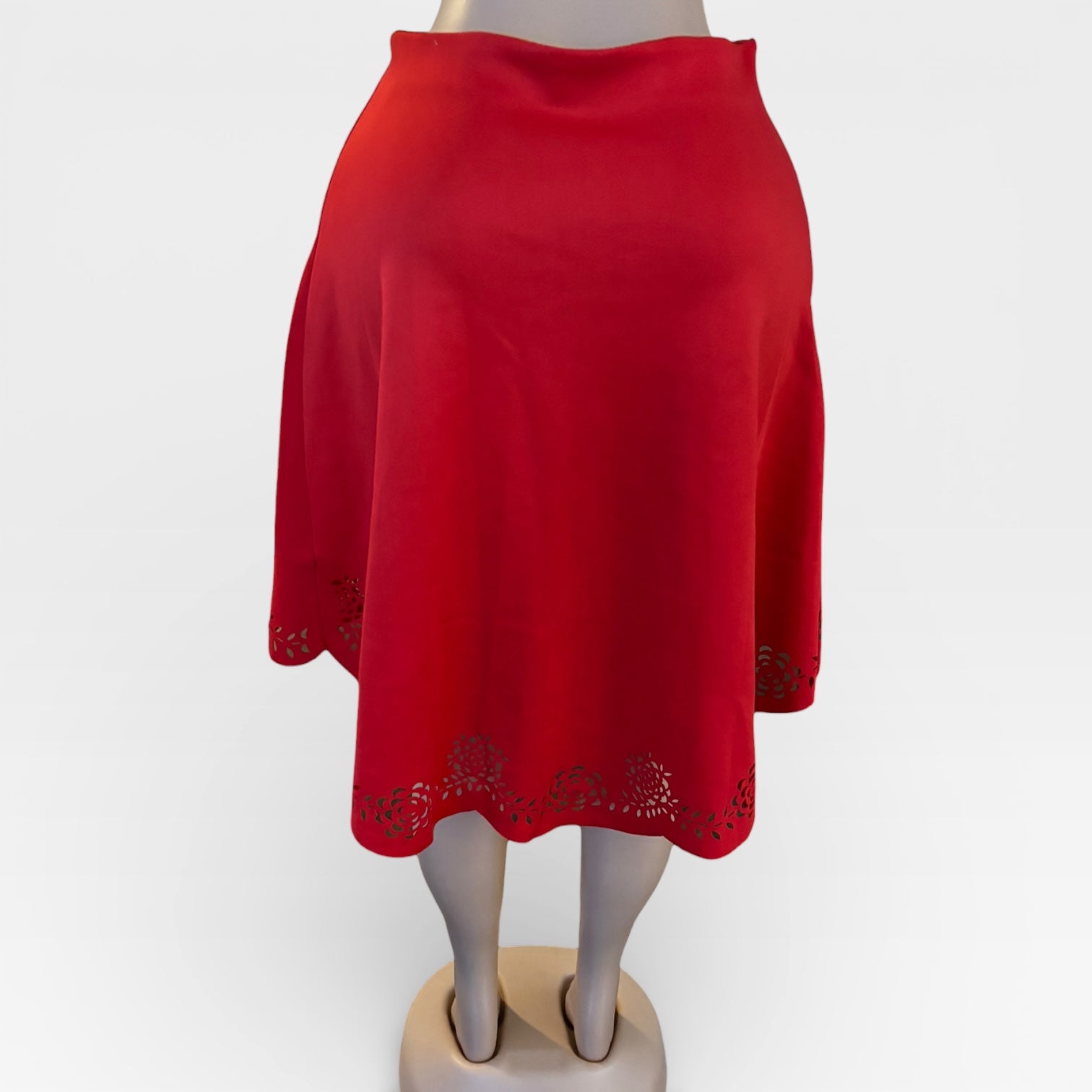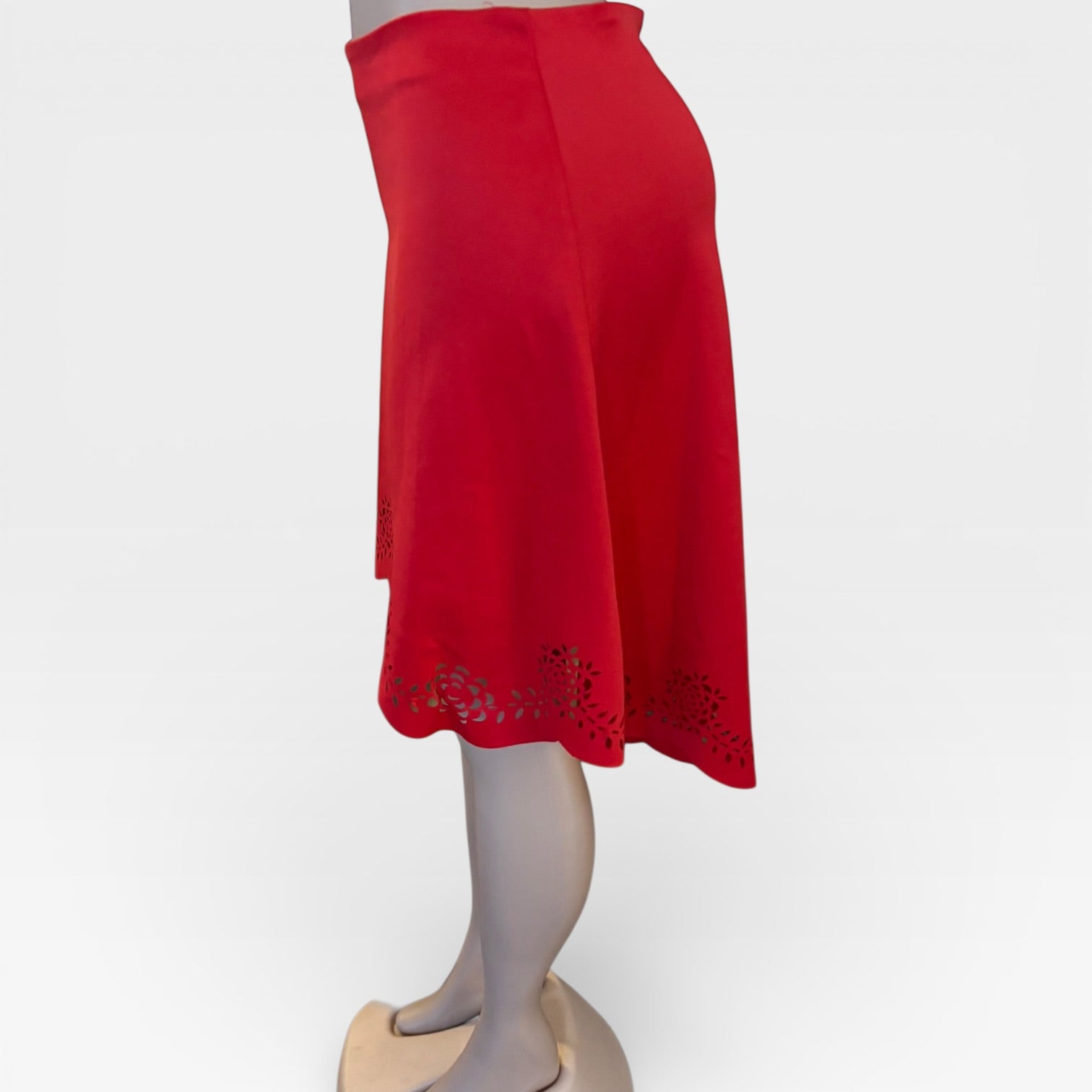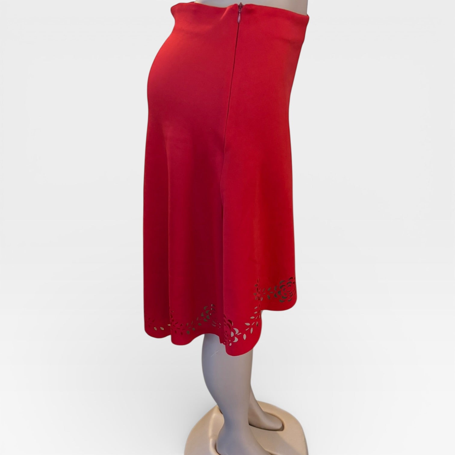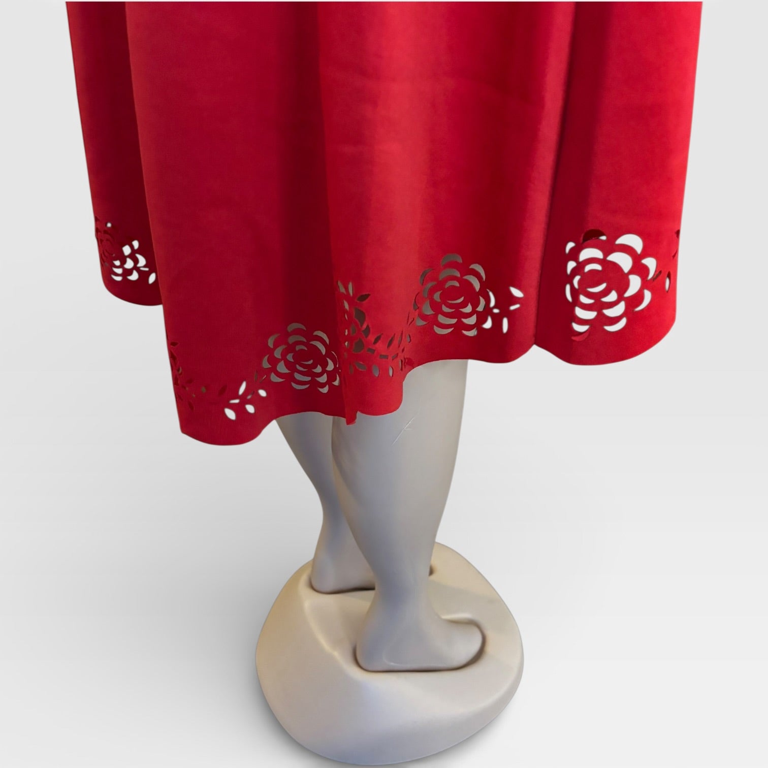 Esta lujosa falda en forma de A está confeccionada con un suntuoso poliéster y llega hasta la rodilla con un impresionante largo. Su diseño sólido y elegante se ofrece en un luminoso color rojo. La falda está diseñada con un favorecedor corte en forma de A y confeccionada con un lujoso tejido de poliéster para ofrecer comodidad y un aspecto hermoso y elegante. Su dobladillo de longitud media añade un toque elegante a cualquier atuendo y está disponible en un impresionante tono rojo para un estilo atemporal.