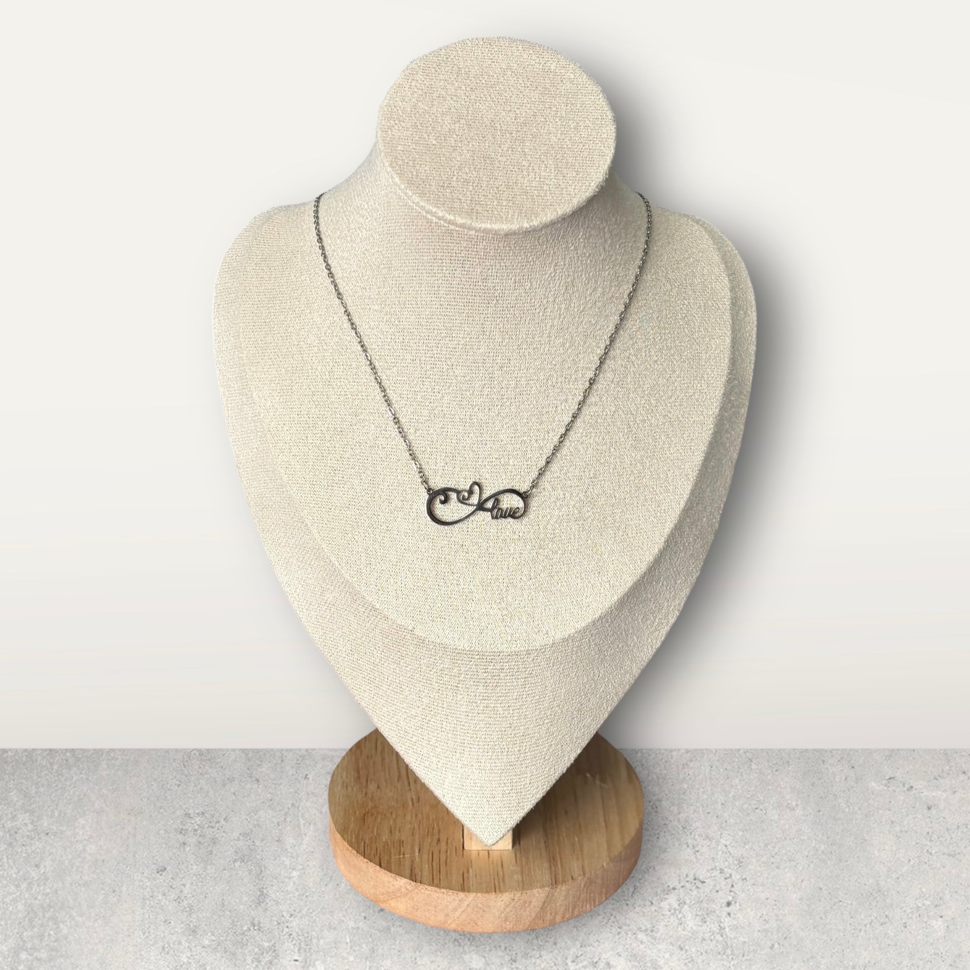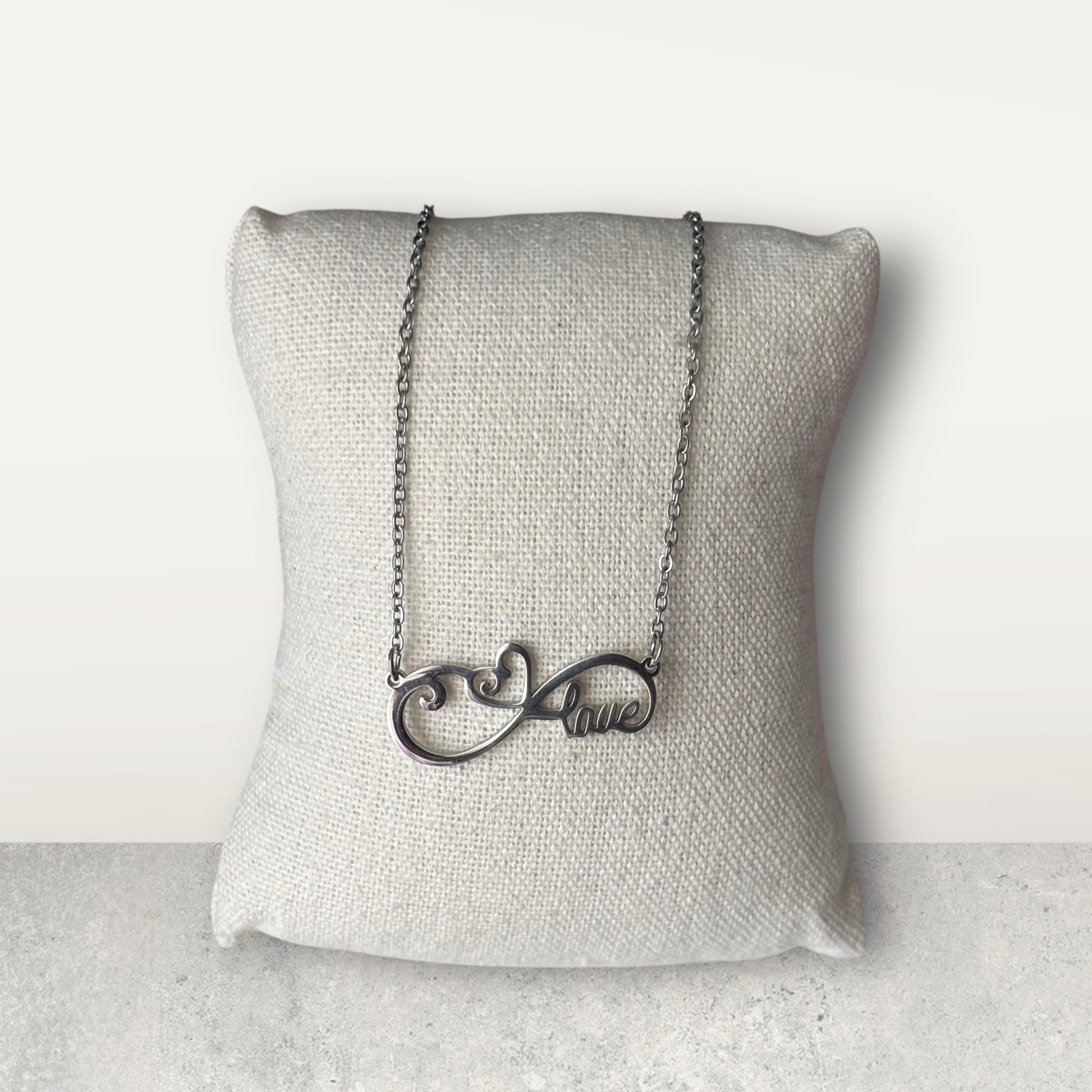 Express your deepest affection with the Infinity Heart Silver Necklace—a radiant symbol of love that lasts forever. This sophisticated 18 1/2-inch piece features a graceful infinity heart design in silver, creating an instantly recognizable statement that speaks volumes about your commitment. Perfect for anniversaries, engagements, or simply reminding someone how much they mean to you, this exclusive necklace elevates any wardrobe with timeless elegance. Its versatile length and refined aesthetic make it equally stunning worn solo or layered with other pieces.
