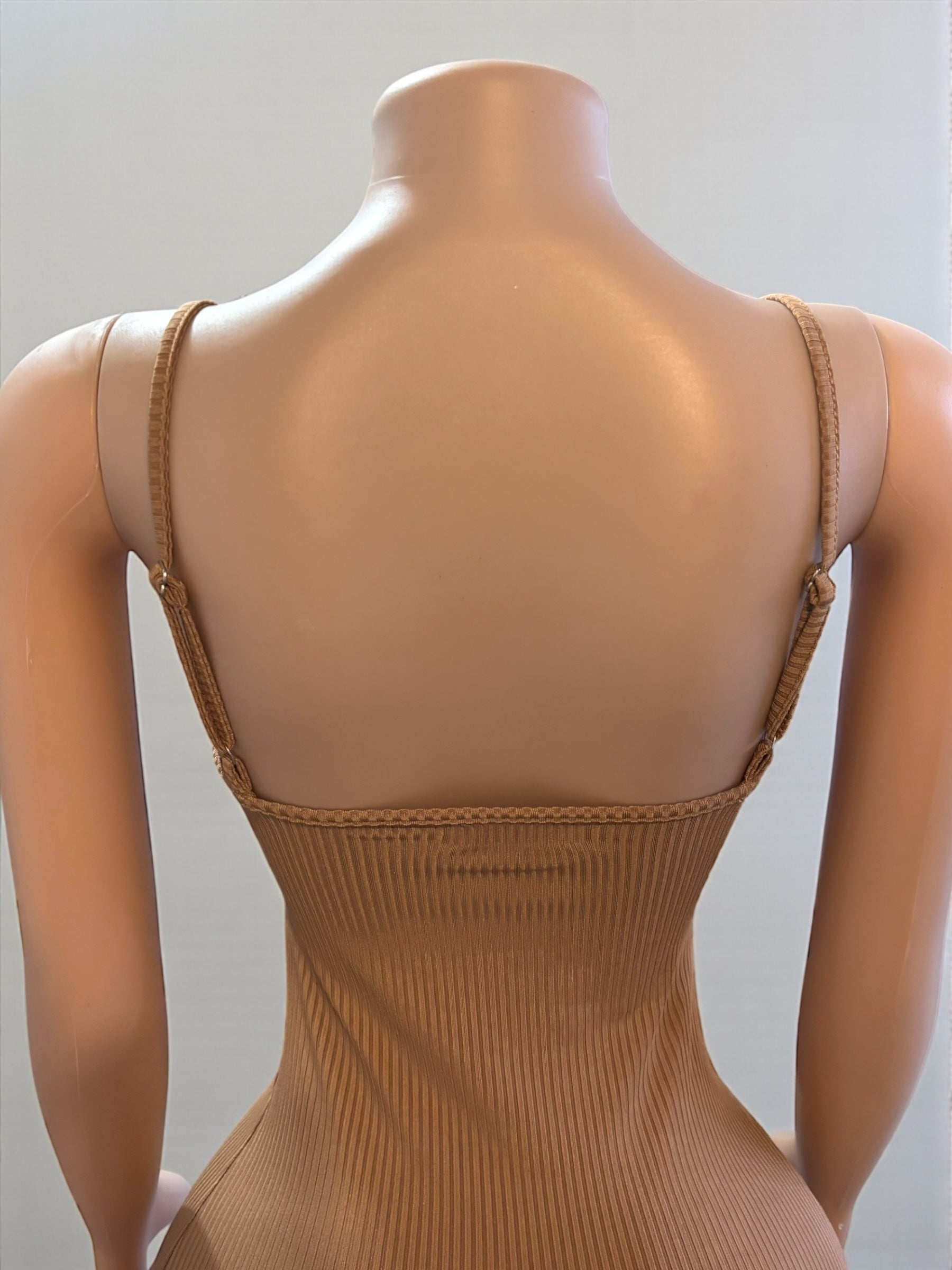 Vestido largo exclusivo con abertura lateral de color caqui para mujer
