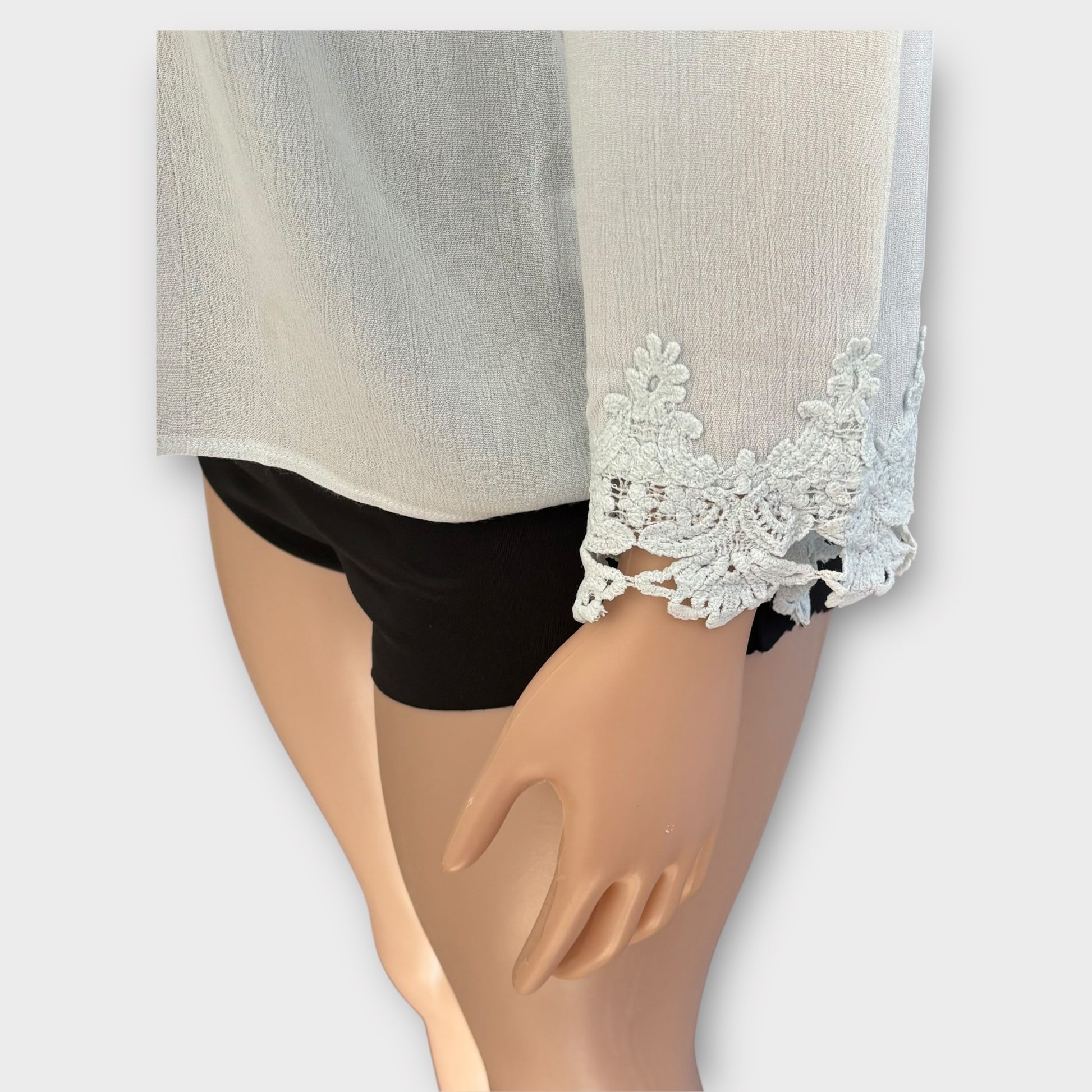 Blusa elegante de encaje azul claro para mujer