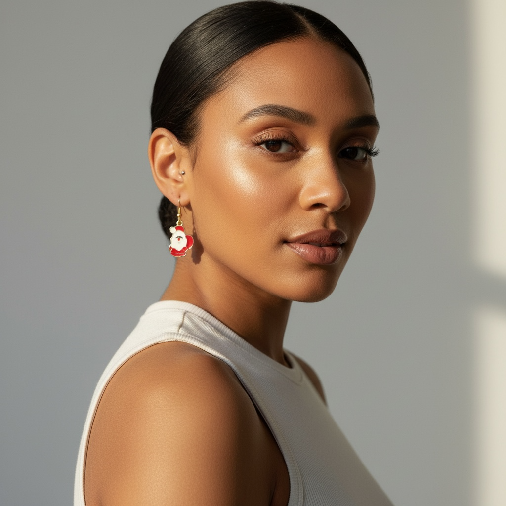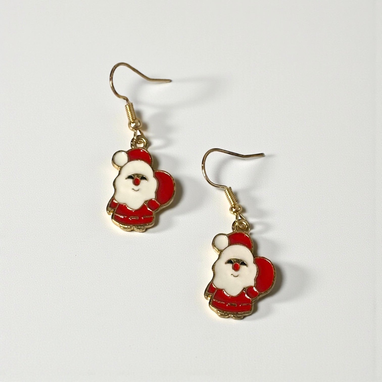 Spread holiday cheer with these adorable Santa mini earrings featuring a cheerful red gift bag design. Crafted from lightweight alloy, these petite 1-inch earrings deliver festive flair without the weight. Perfect for stocking stuffers or adding a playful touch to your seasonal style, these cute accessories capture the magic of Christmas in miniature form.