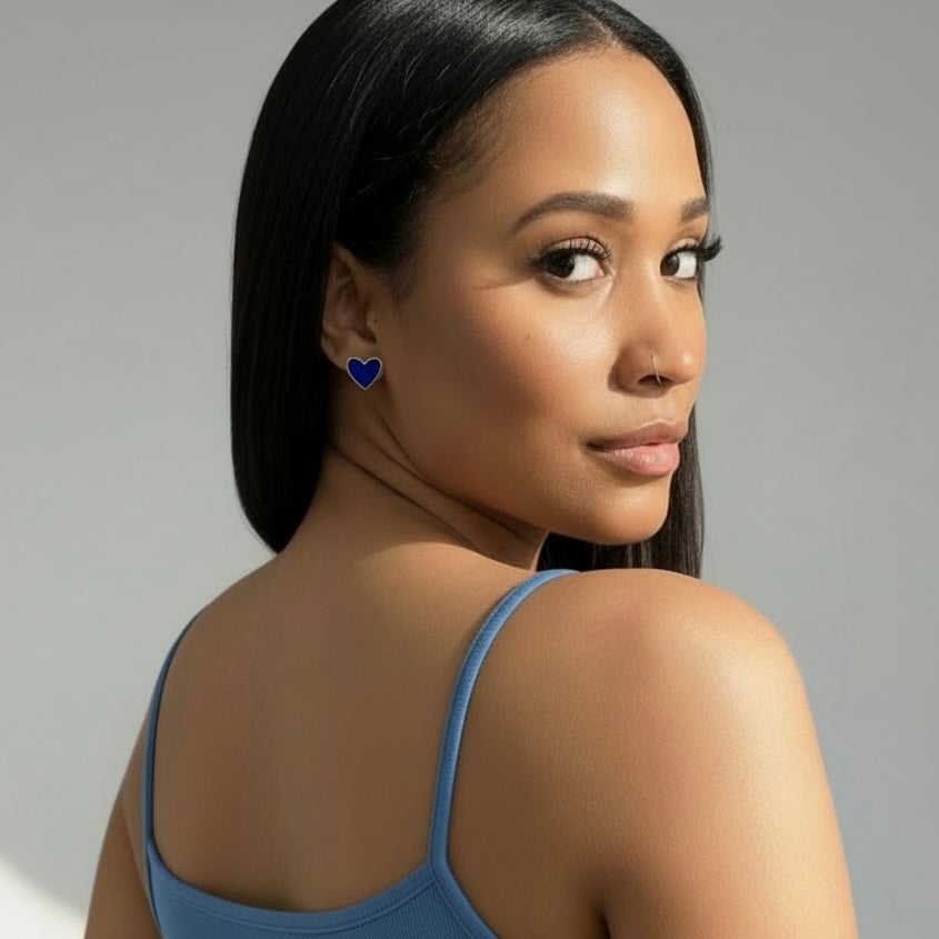 Small Dark Blue Heart Earring