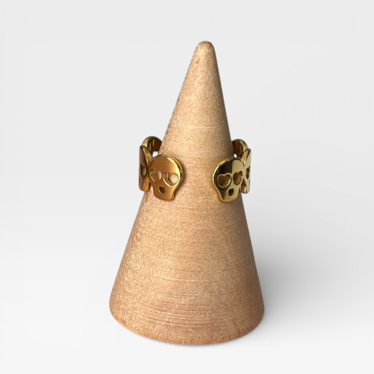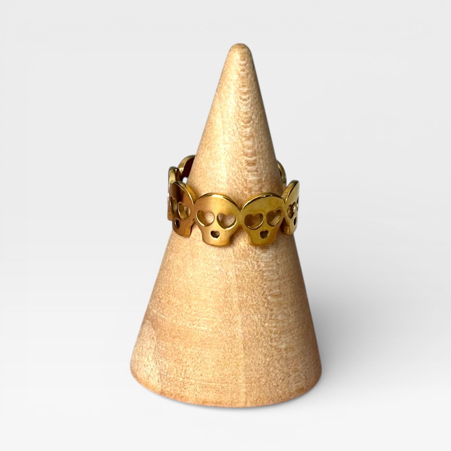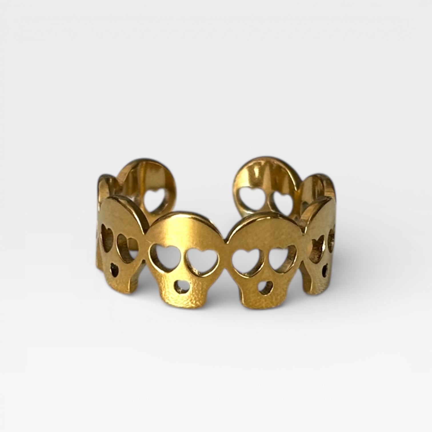 Embrace your edgy side with this bold Waterproof Adjustable Skull Ring. Crafted from durable 304 stainless steel with a striking gold finish, it's built to withstand daily wear without tarnishing or fading. The adjustable design fits most finger sizes, making it the perfect unisex statement piece for anyone who loves a touch of attitude. Whether you're dressing up or keeping it casual, this skull ring delivers serious style that won't quit.