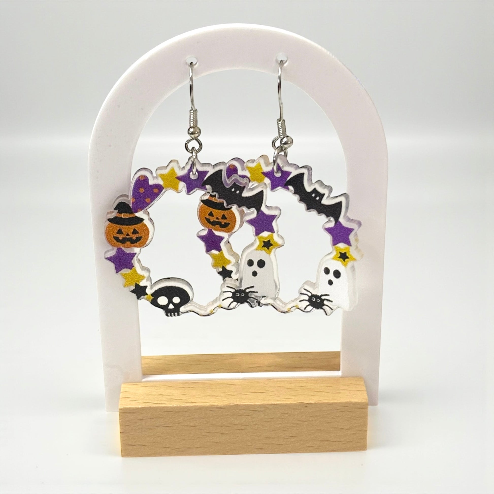 Get ready to spook up your style with our Acrylic Halloween Round Drop Earrings! Crafted from durable acrylic and alloy material, these round-shaped earrings measure about 2 inches long and feature a vibrant multicolor design perfect for any Halloween look. Elevate your accessories game with this festive and fun halloween themed pair.