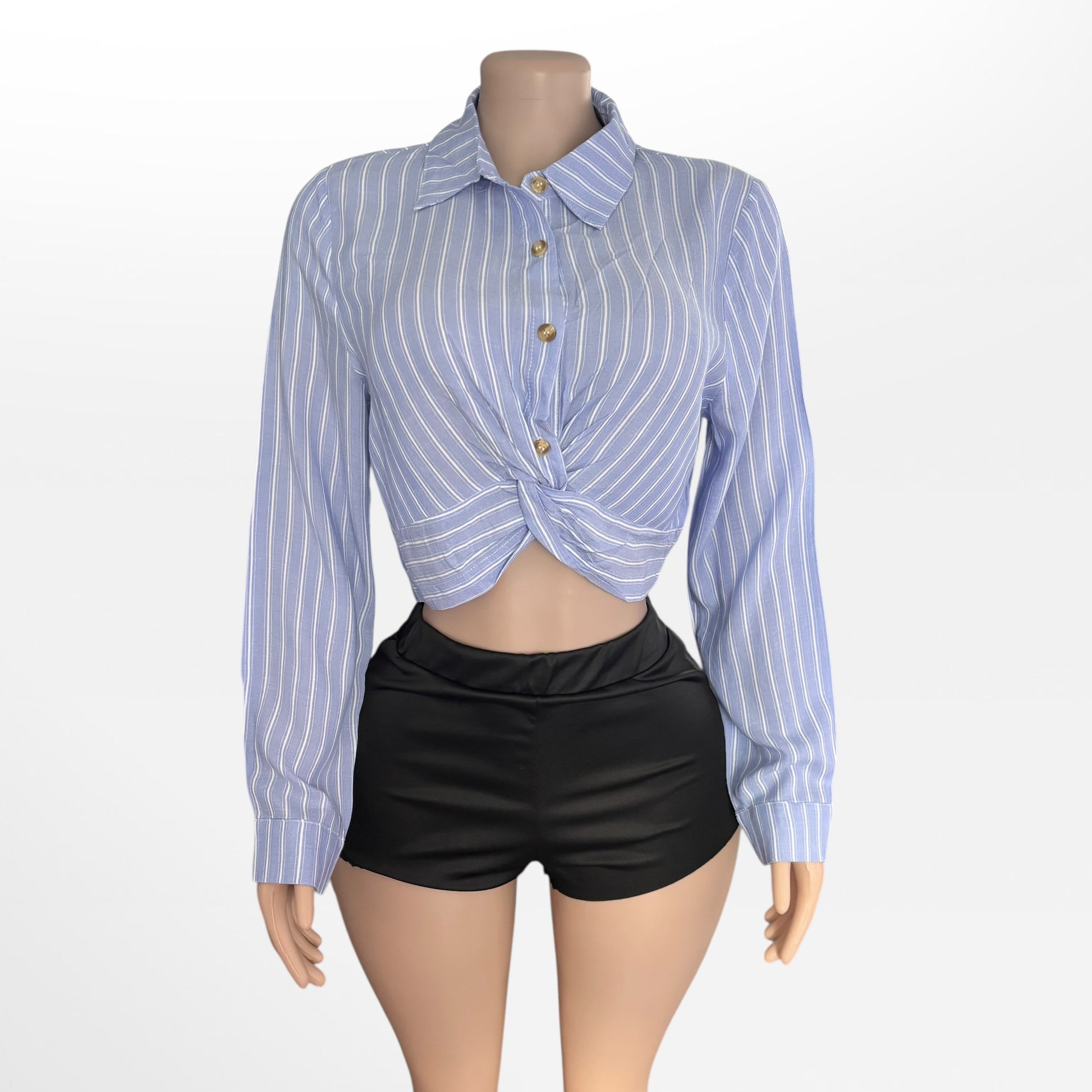 Blue Striped Button Down Crop Top