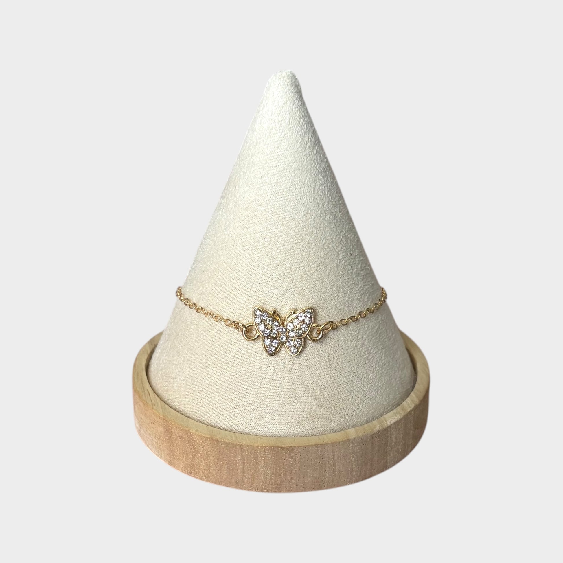 Bring sparkle and charm to your ankle with this Butterfly Rhinestone Gold Anklet. Featuring a delicate butterfly accented with shimmering rhinestones, this piece adds a playful yet elegant touch to your style.