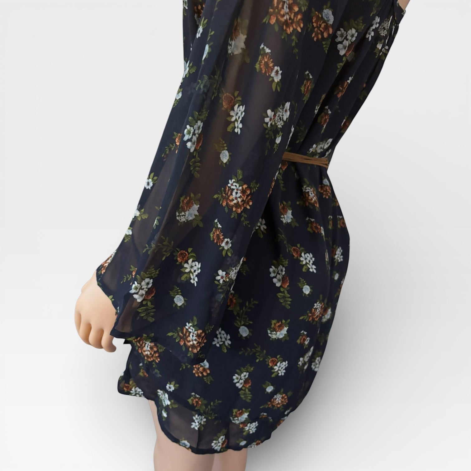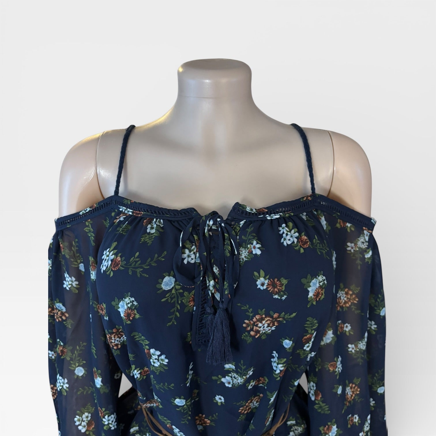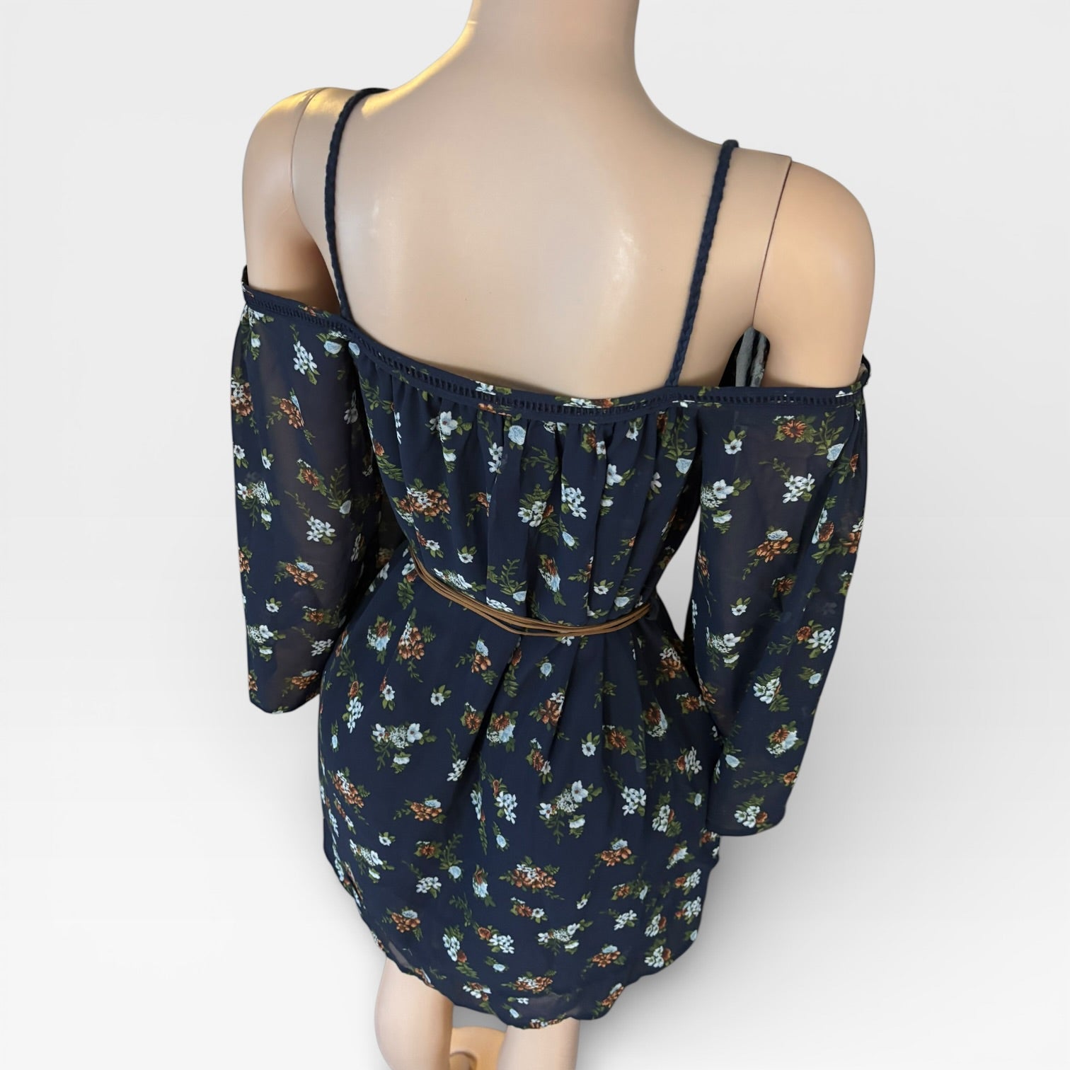 Discover timeless elegance with this navy blue floral dress, designed to turn heads at any occasion. Featuring charming off-shoulder sleeves and a vintage-inspired belt, this piece combines classic sophistication with modern style. Crafted from luxuriously soft polyester, it drapes beautifully while keeping you comfortable all day long. This versatile dress transitions effortlessly from daytime gatherings to evening events. Perfect for anyone seeking a polished, feminine look that never goes out of style.