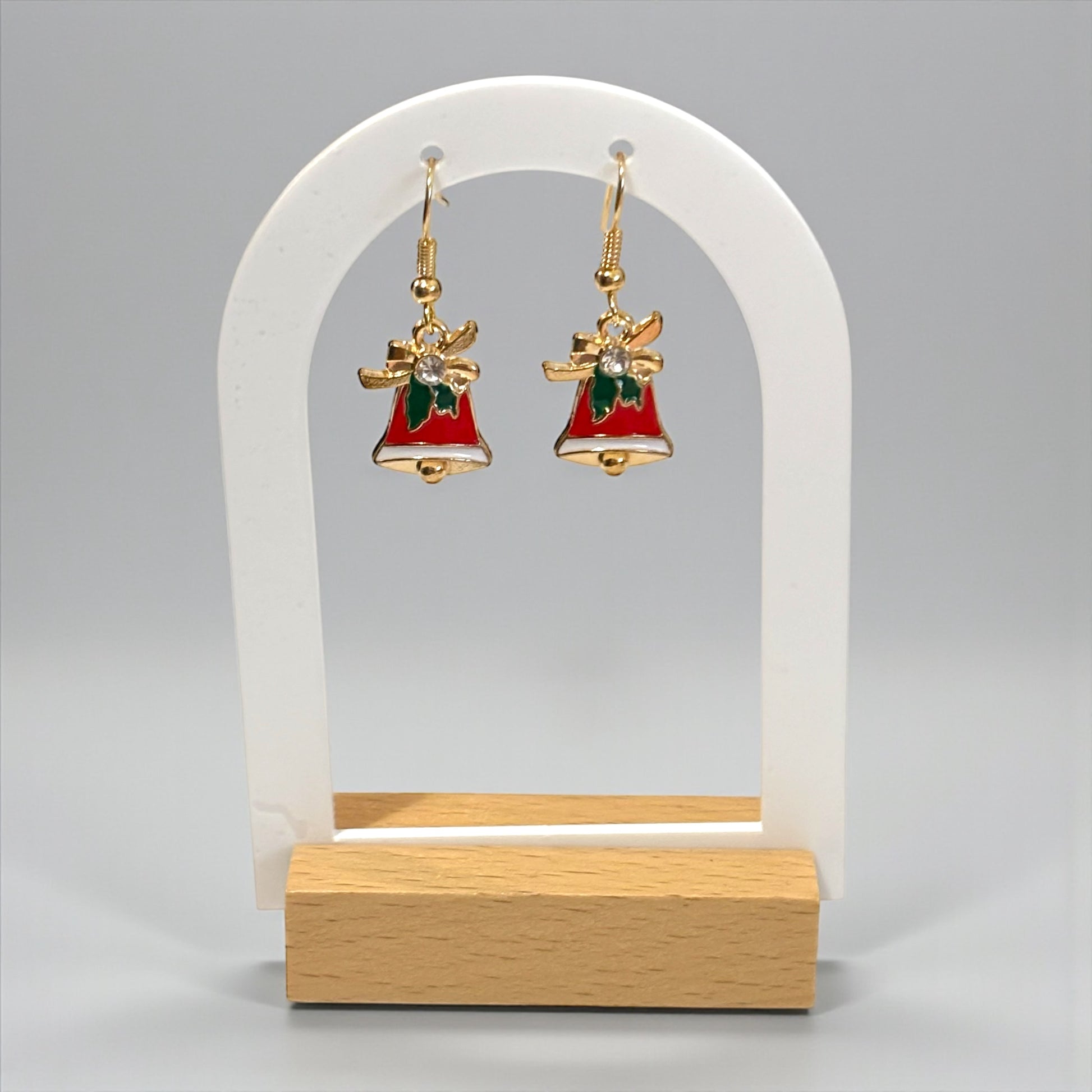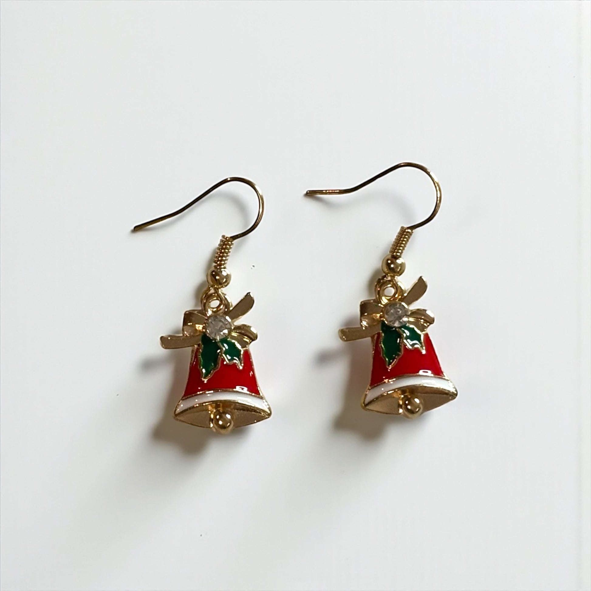 Add a touch of elegant and festive charm to any outfit with our Gold Bell Small Drop Earrings. These lightweight earrings feature delicate bells in a stunning gold color accented with red and green details. With a subtle dangle, they are perfect for any occasion or everyday wear. Elevate your style with these beautiful and unique earrings.