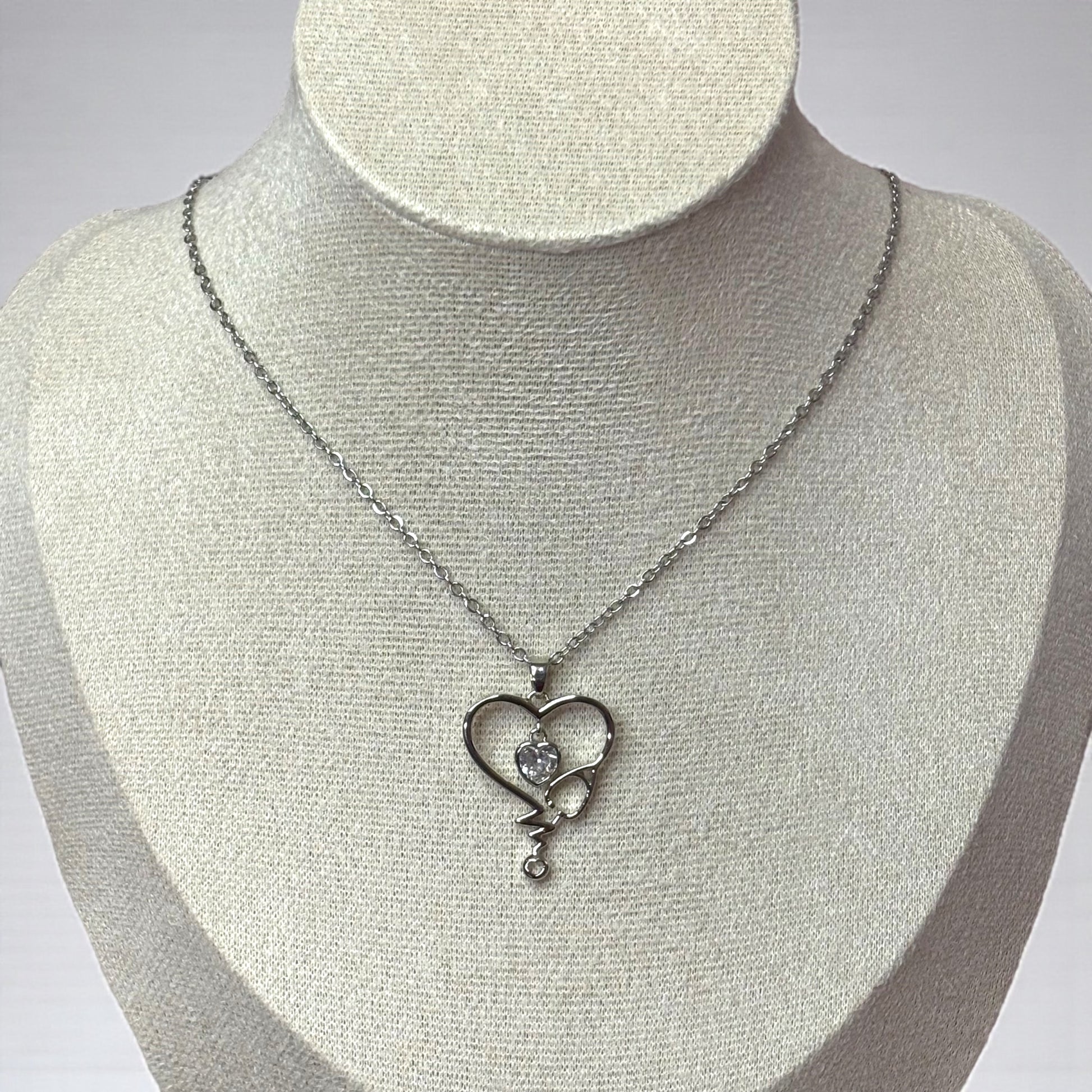 This Heart Stethoscope Nurse Necklace is a trendy statement piece that combines a heart and stethoscope pendant, crafted with copper alloy and cubic zirconia. The 18-inch chain adds a touch of elegance, making it the perfect gift for any nurse or medical professional.
