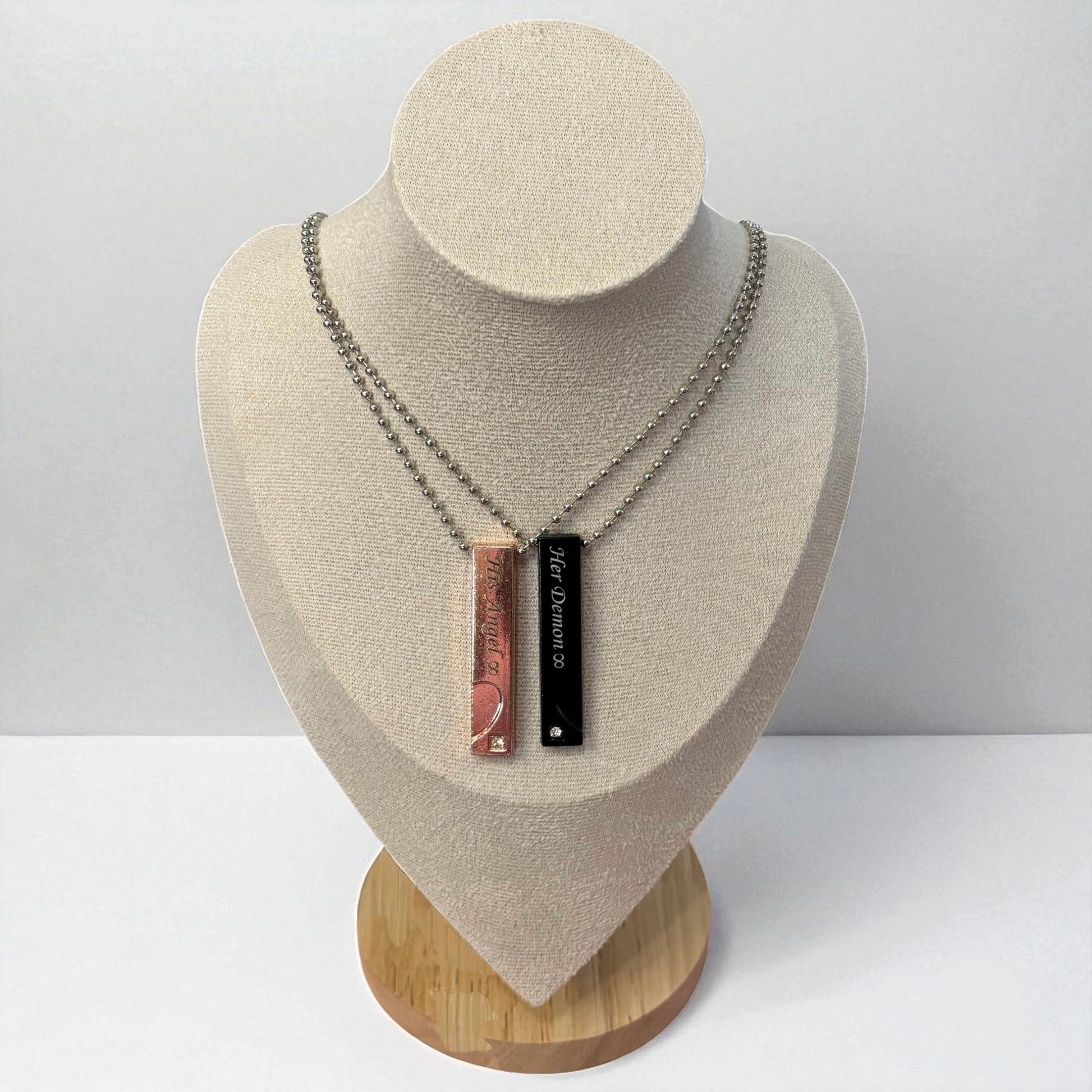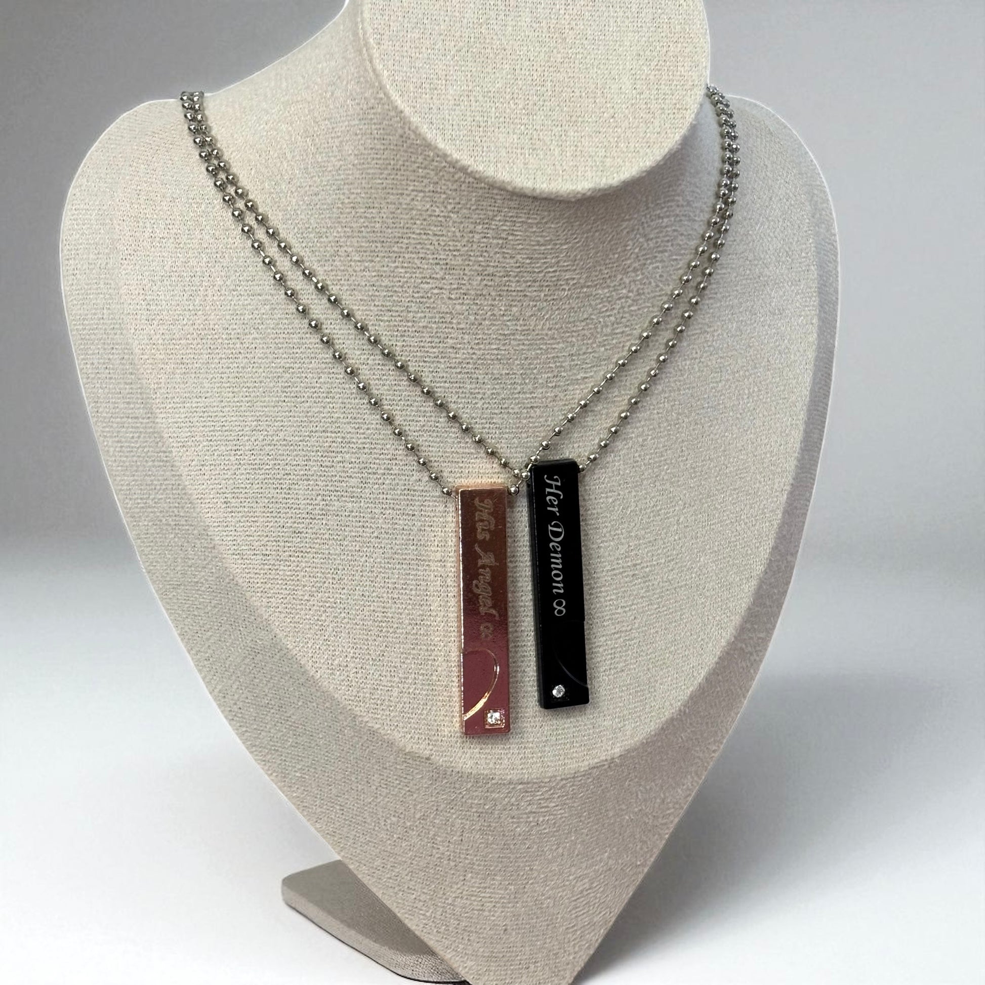 Get ready to show off your unique love with our Her Demon His Angel Couples Matching Necklace. Made of zinc alloy, this trendy necklace comes in a 24-inch length with a 2-inch pendant, perfect for both of you to share. It's a must-have for any stylish couple!