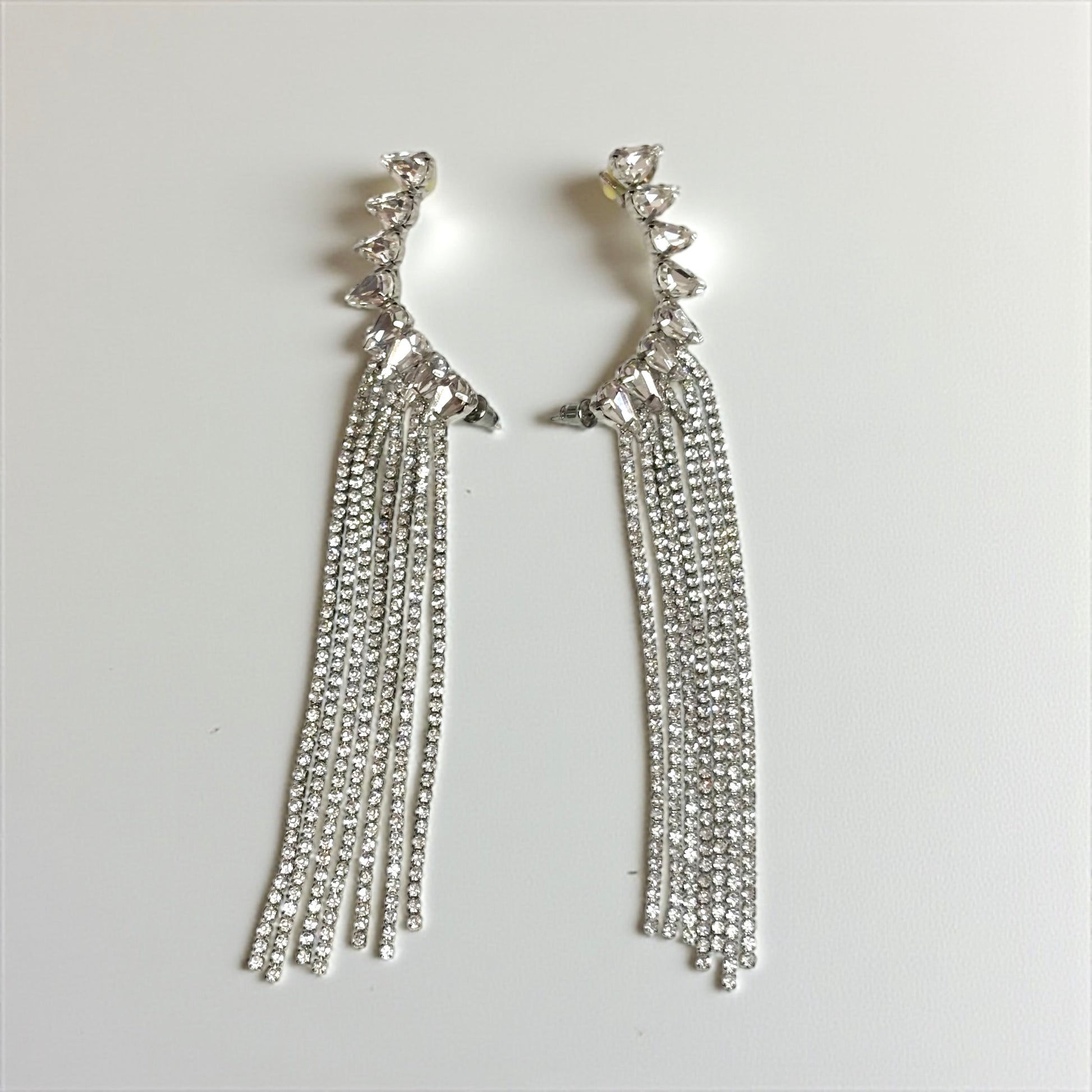 These elegant Night Out Rhinestone Earrings feature a durable alloy and silver design, embellished with dazzling rhinestones. Measuring 5 1/2 inches, they are the ideal accessory to elevate your look for a chic and memorable evening, ensuring you stay stylish from start to finish.