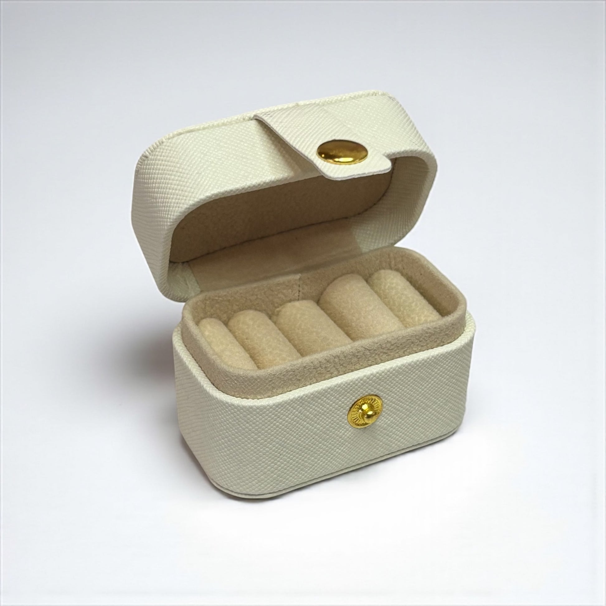 Keep your favorite rings and stud earrings neatly organized with this PU Leather Mini Jewelry Organizer. Its compact size and soft off white color make it a stylish and convenient accessory for any dresser or travel bag. Designed to protect and display your small jewelry pieces, this organizer combines practicality with elegance, helping you stay effortlessly organized wherever you go.