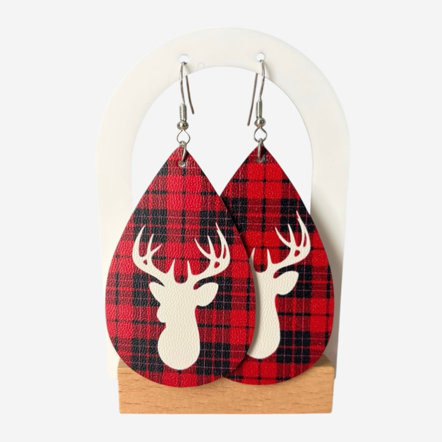 Transform your holiday look with the Reindeer Tear Drop Earrings. The whimsical reindeer pattern and dangling design (measuring 2 1/2 inches) in festive red and white will add a touch of merriment to your outfits. Spread joy and a few jolly giggles wherever you venture!