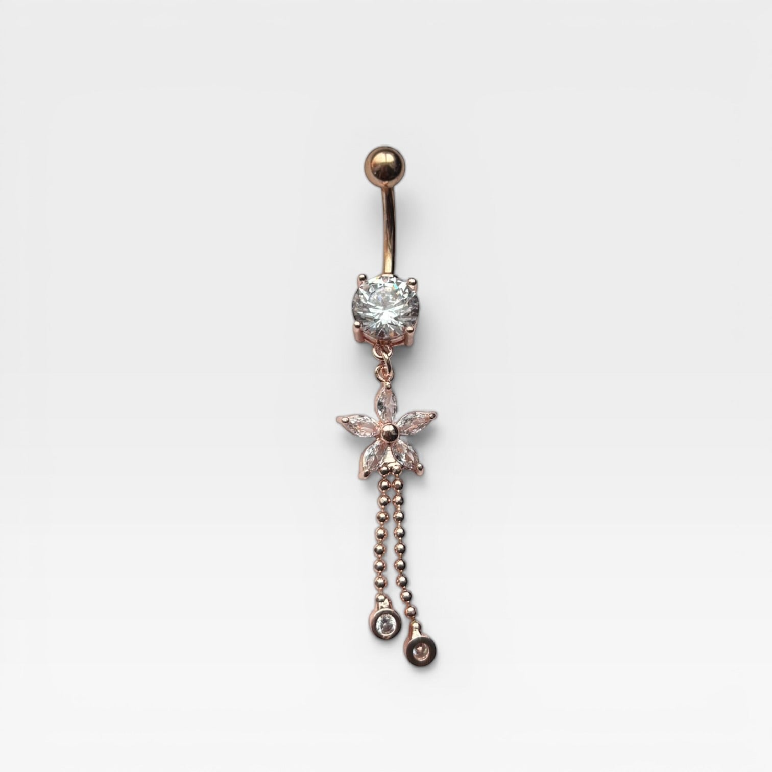 Rose Gold Crystal Flower Belly Ring