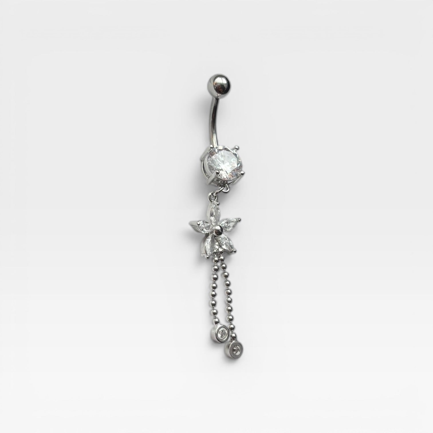 Silver Crystal Flower Dangle Belly Ring