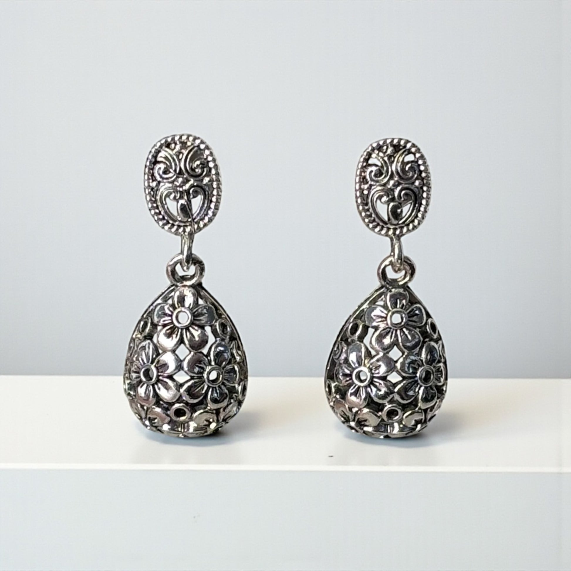 Silver Small Dangle Flower Earring