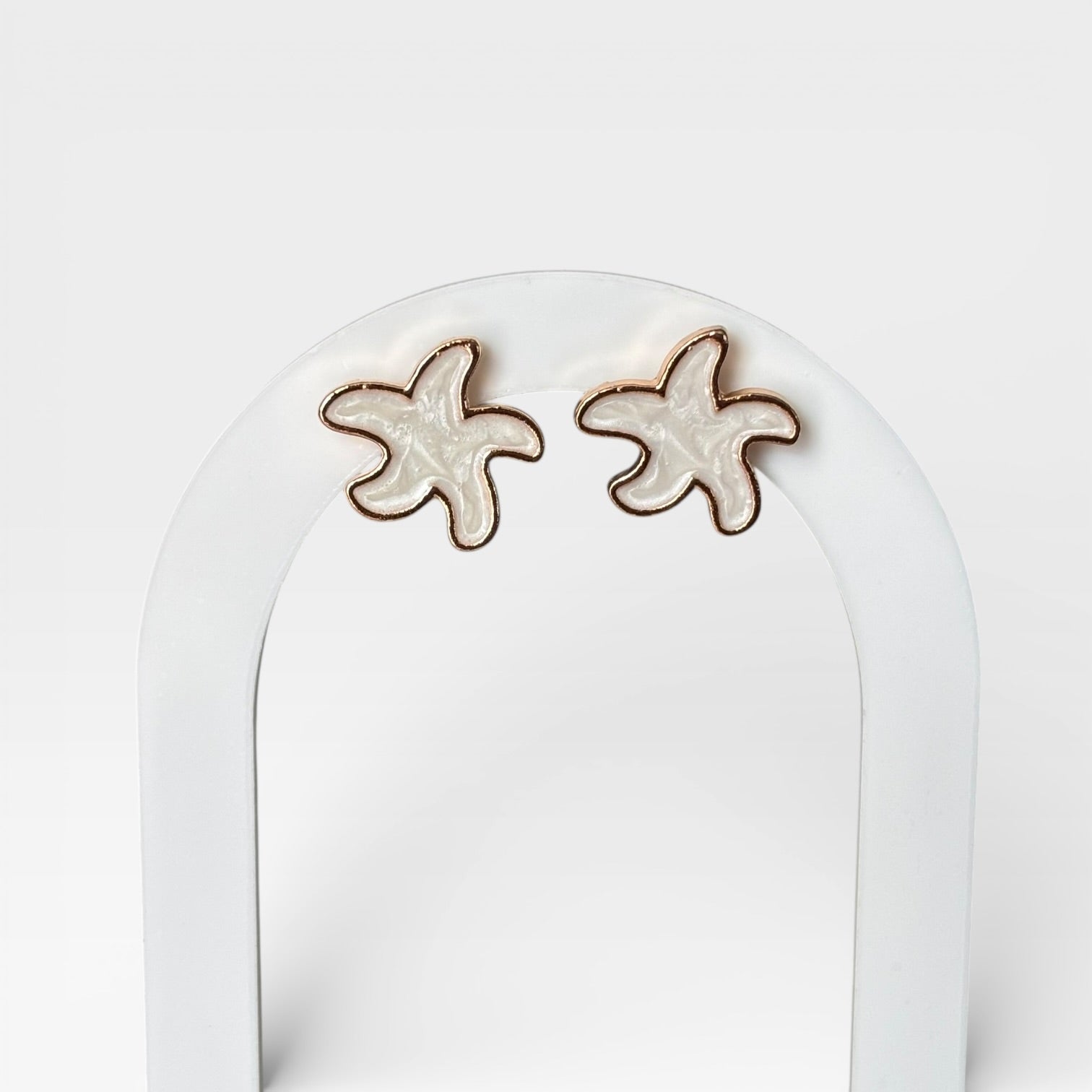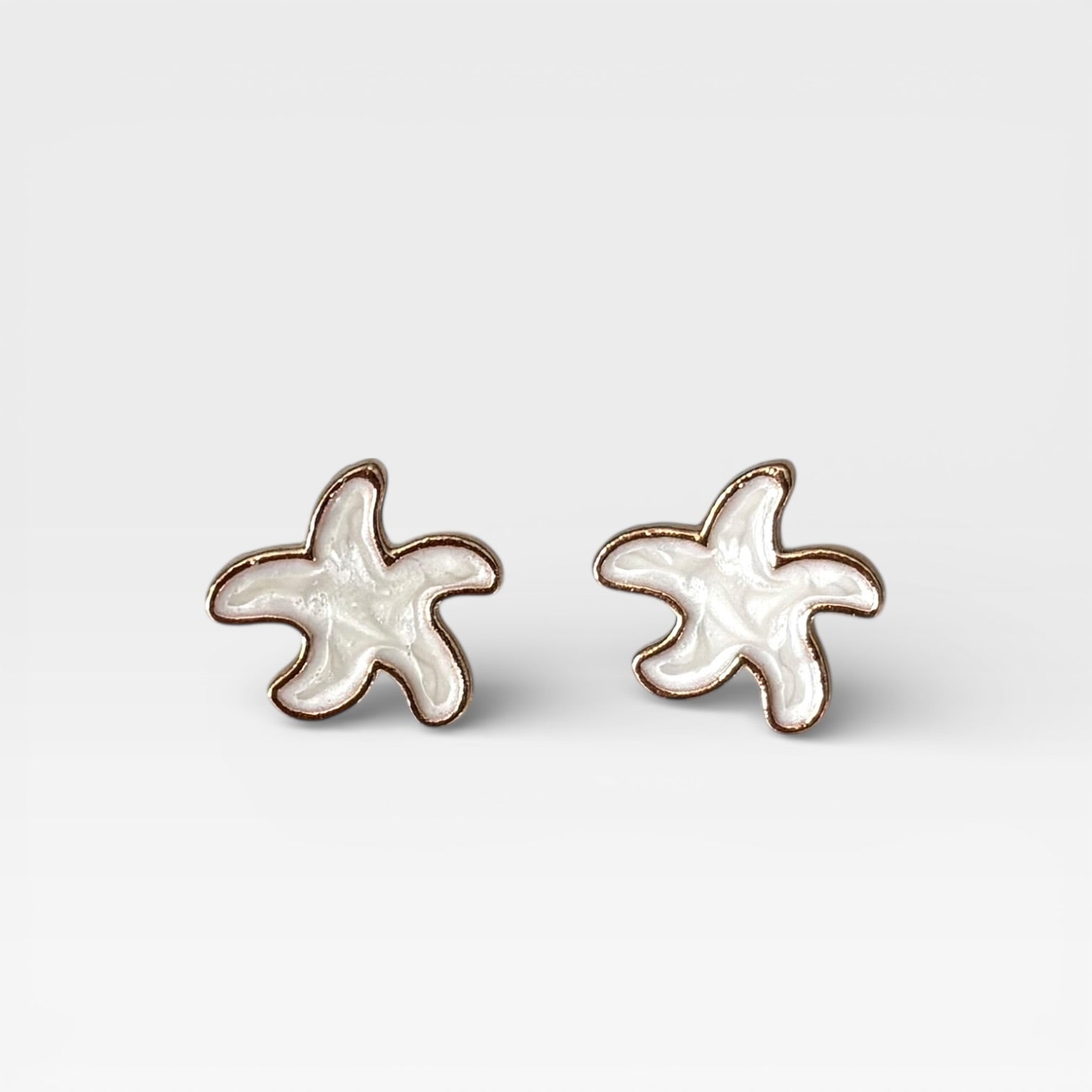 Delicate starfish studs bring coastal charm to your everyday look. Crafted in crisp white, these petite 1/2-inch earrings capture the free-spirited essence of bohemian style. Perfect for layering or wearing solo, they're lightweight enough for all-day comfort while making a subtle statement. Ideal for beach lovers and anyone drawn to ocean-inspired jewelry that feels effortlessly chic.