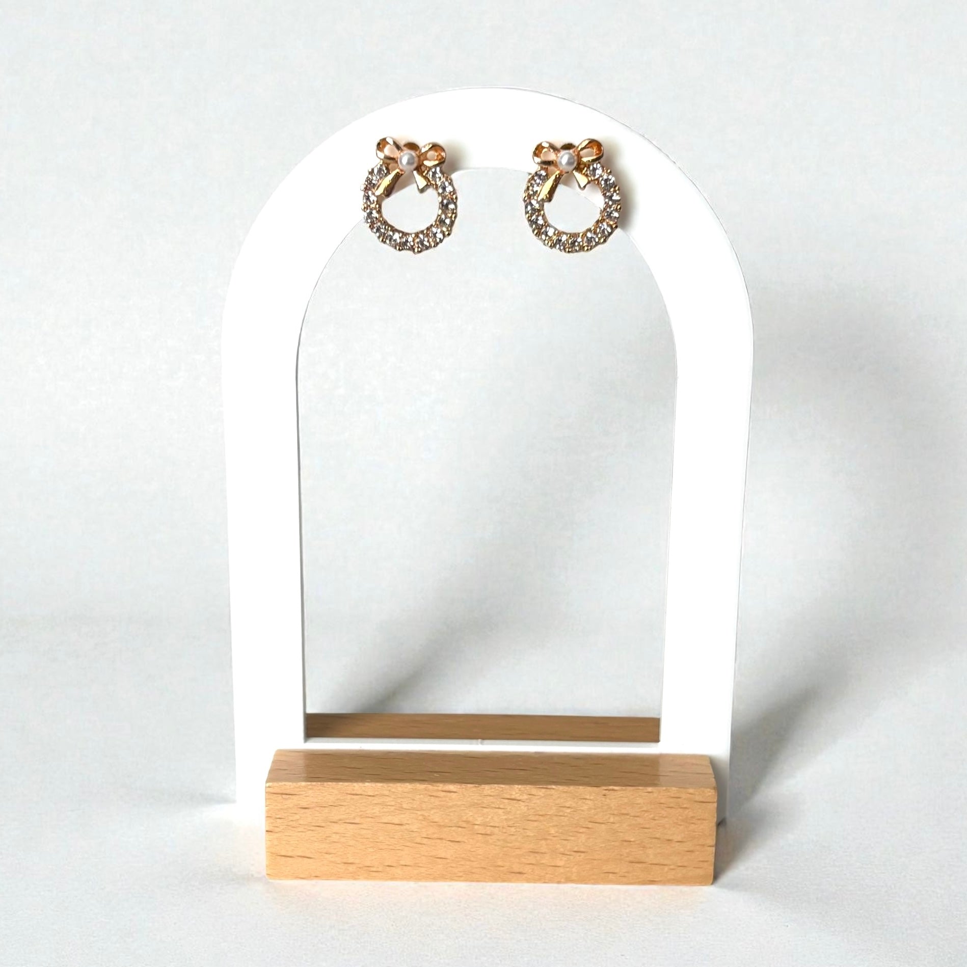 Delicate gold wreath studs that add understated elegance to any look. Crafted from lightweight alloy, these petite earrings measure just 1/2 inch, making them perfect for everyday wear or layering with other pieces. The intricate wreath design brings a touch of sophistication without the weight, so you can wear them all day in complete comfort. Ideal for those who prefer subtle, refined jewelry that complements rather than overwhelms.