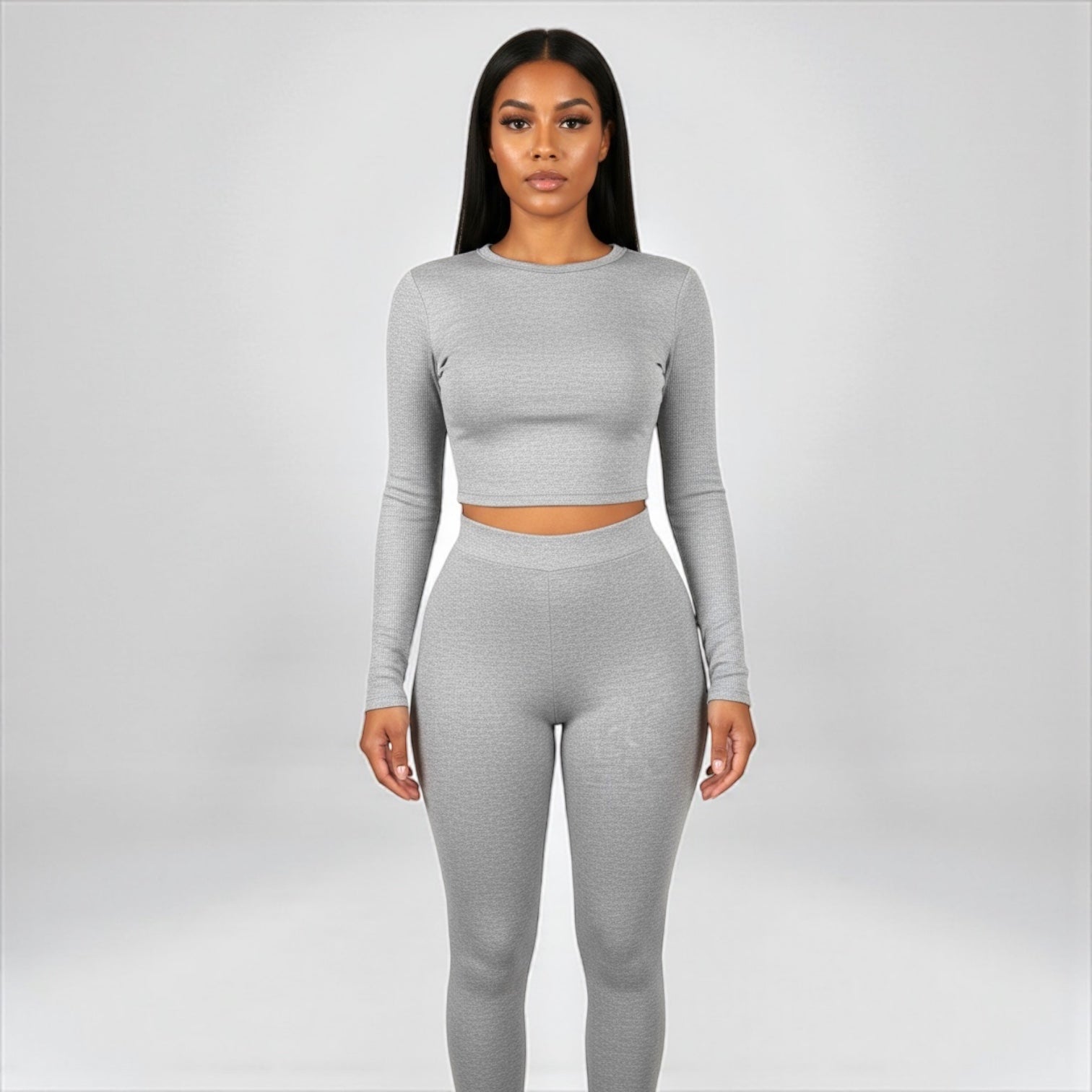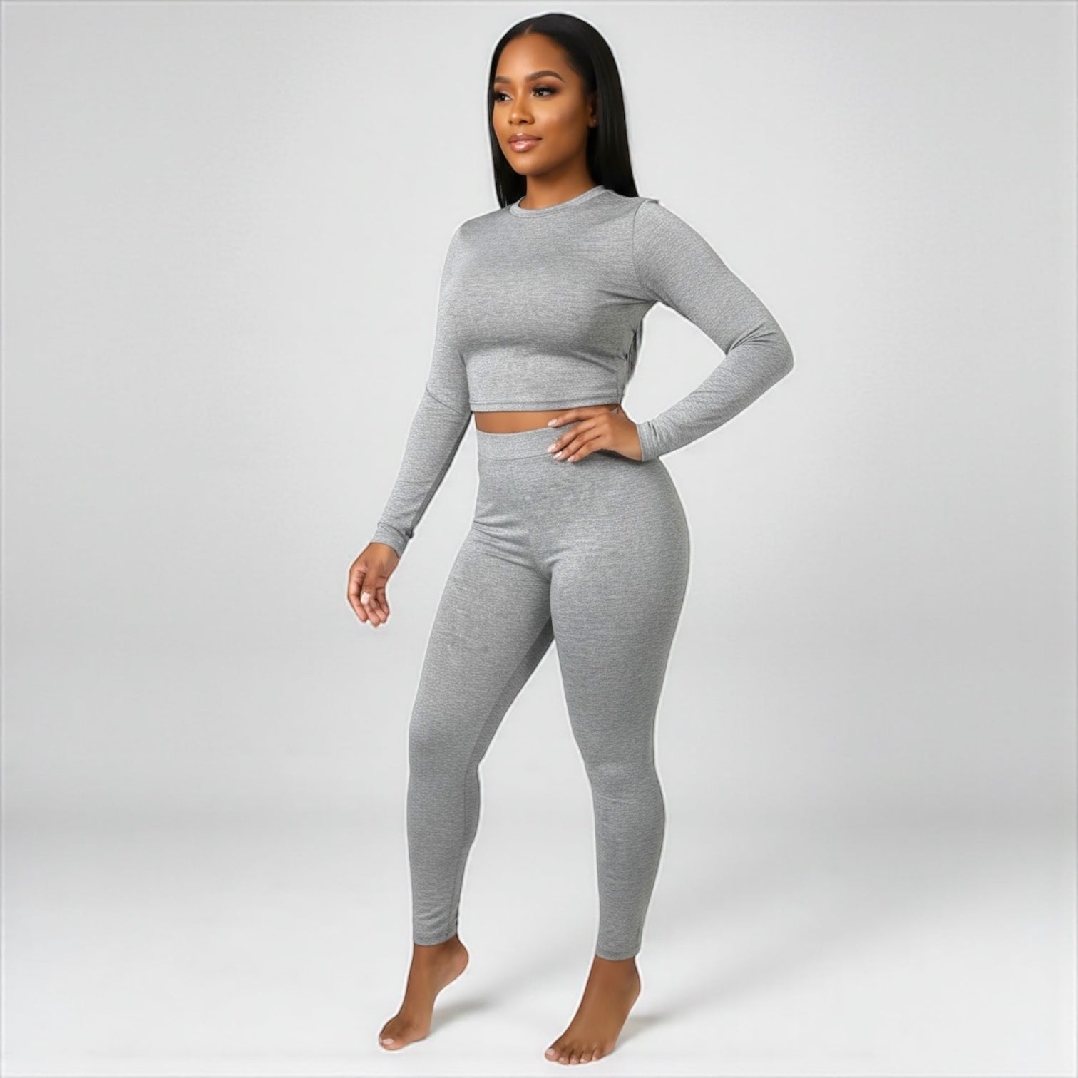 2 Piece Top and Long Pant Gray Set