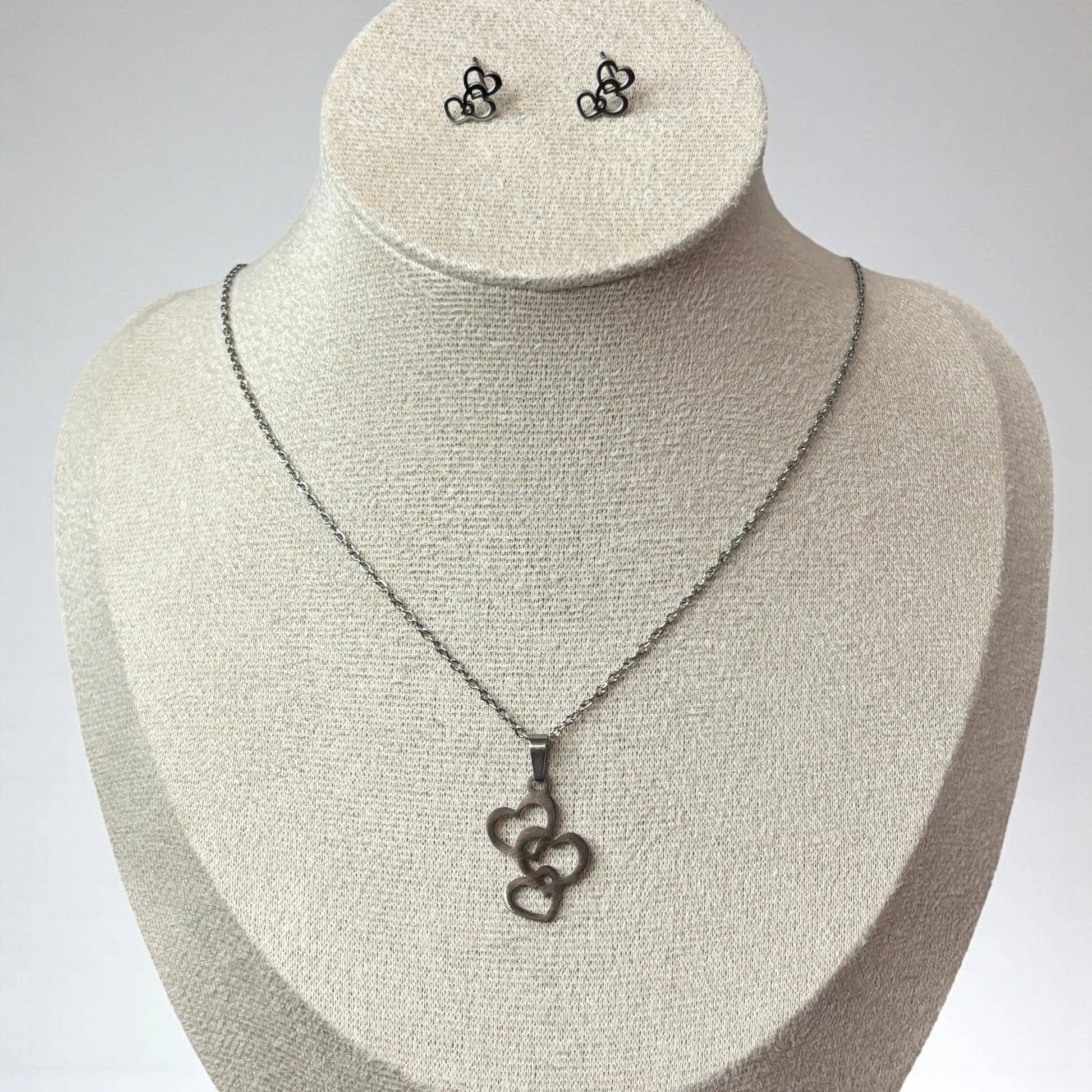Elevate your accessory game with our Stainless Steel Triple Heart Necklace & Earring Set. Made with high-quality stainless steel, this set exudes sophistication and durability. In a versatile 17 inches with a 2 inch extender for the perfect fit, and complemented by small stud earrings, this set is perfect for any occasion.