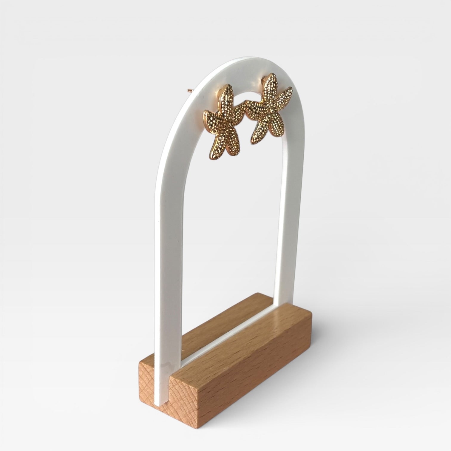 Delicate starfish studs that bring coastal charm to any look. Crafted from quality alloy with a warm gold finish, these petite 1/2-inch earrings are perfect for everyday wear or layering. Their understated design complements both casual and dressy outfits, making them a versatile addition to your jewelry collection. Lightweight and comfortable for all-day wear.
