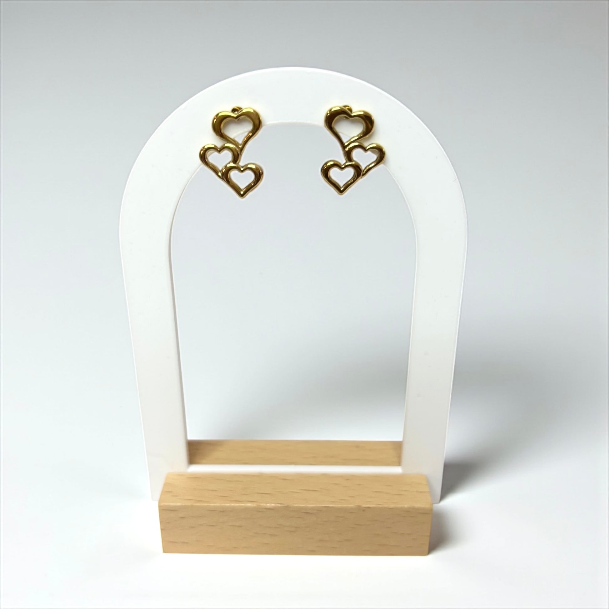 These Triple Hearts Small Earrings offer a delicate yet meaningful design crafted from durable stainless steel with a sleek gold finish. Their lightweight stud style ensures all-day comfort, making them perfect for any occasion. Add a subtle, elegant touch to your look with these charming earrings that symbolize love and style in a timeless way.